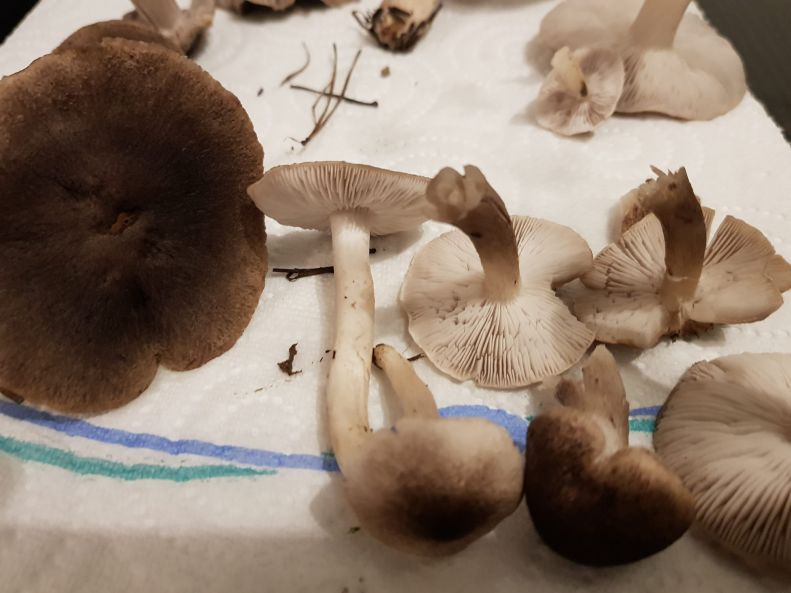Bei dem ganz alten Exemplar erkenne ich allerdings nicht mehr den angeblich typischen Buckel (bei den meisten aber schon). Dafür hat dieser einen hohlen Stiel und die Lamellen sind deutlich grau statt weiss (sieht man auf den Fotos nicht so gut).