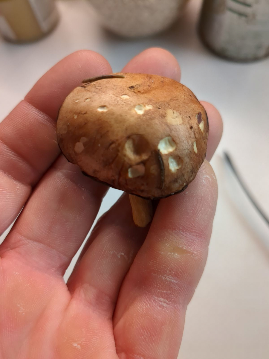 Edit: Wobei Beorn wahrscheinlich besser liegt - die Riefen, der weiße Hutrand, der (wahrscheinlich) Buchenholzstamm...