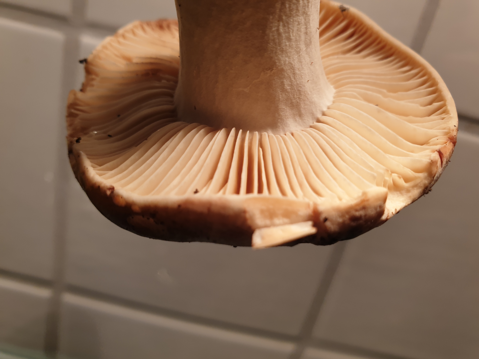 Die Lamellen waren auf einer Ring, nicht direkt am Stiel und den Stiel war genattert, ähnlich wie beim Parasol. VG