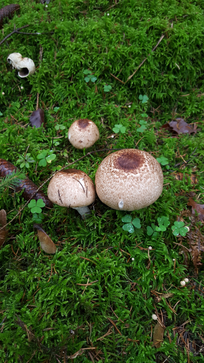 Bei uns im Nadelwald (müsste ein Fichtenwald sein) steht alles voll mit Champignons.