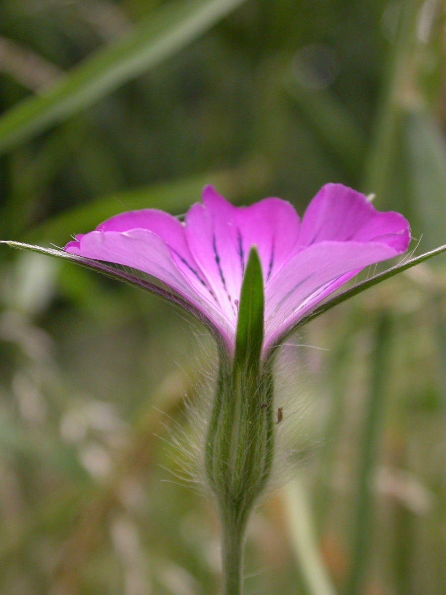 Dort fielen mir dann in einer hüfthohen Wiese diese durch die langen Kelchblätter sehr auffälligen schönen Kornraden, Agrostemma githago auf.
