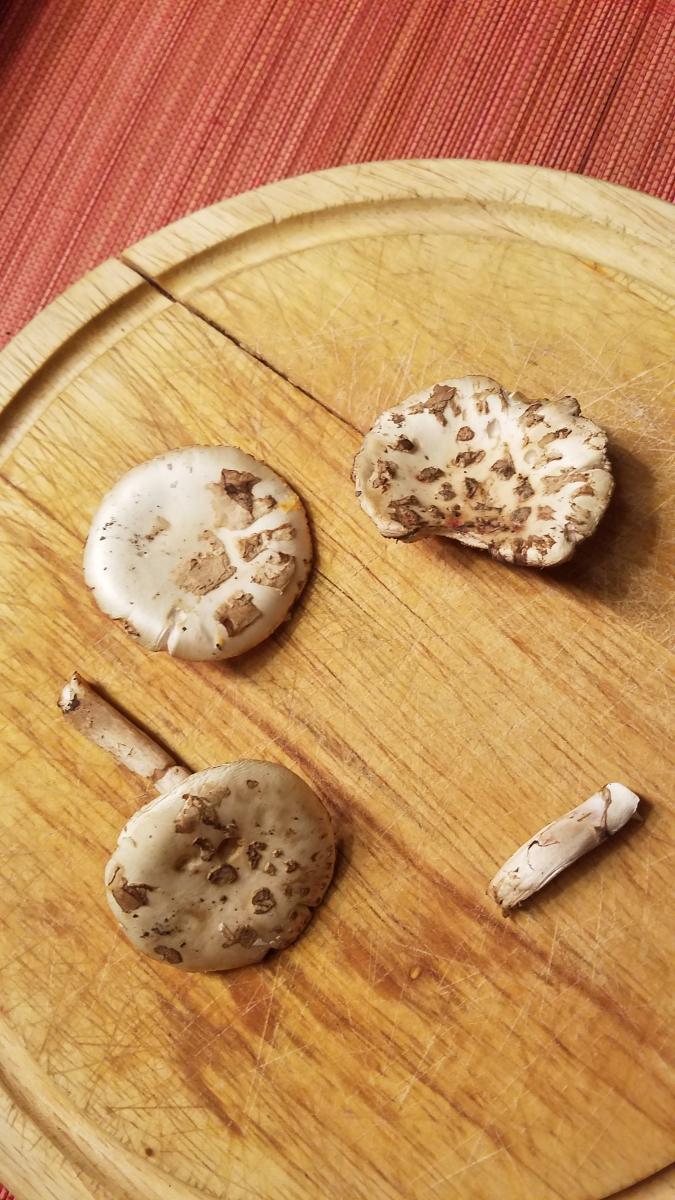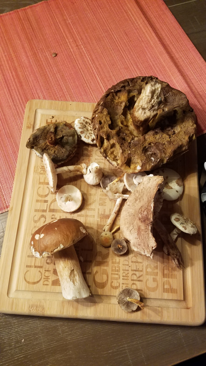 wir haben nur 2 kleine mit gekauften Champignons gemacht. Unter dem Maronenröhrling ist er auch von der Seite mit Knolle zu sehen.