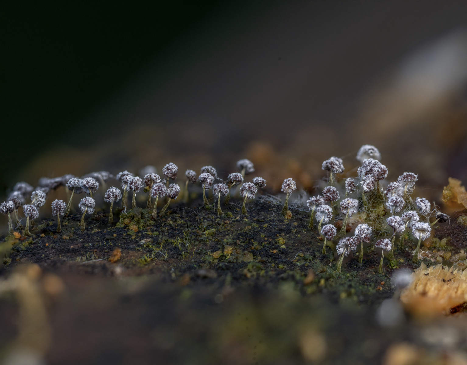 ob es sich hier um Schleimpilze handelt, weiß ich nicht. Weil es sie aber in weiß, braun u. schwarz gibt und ein Myzellium nicht sichtbar ist, scheint mir der Gedanke naheliegend.
