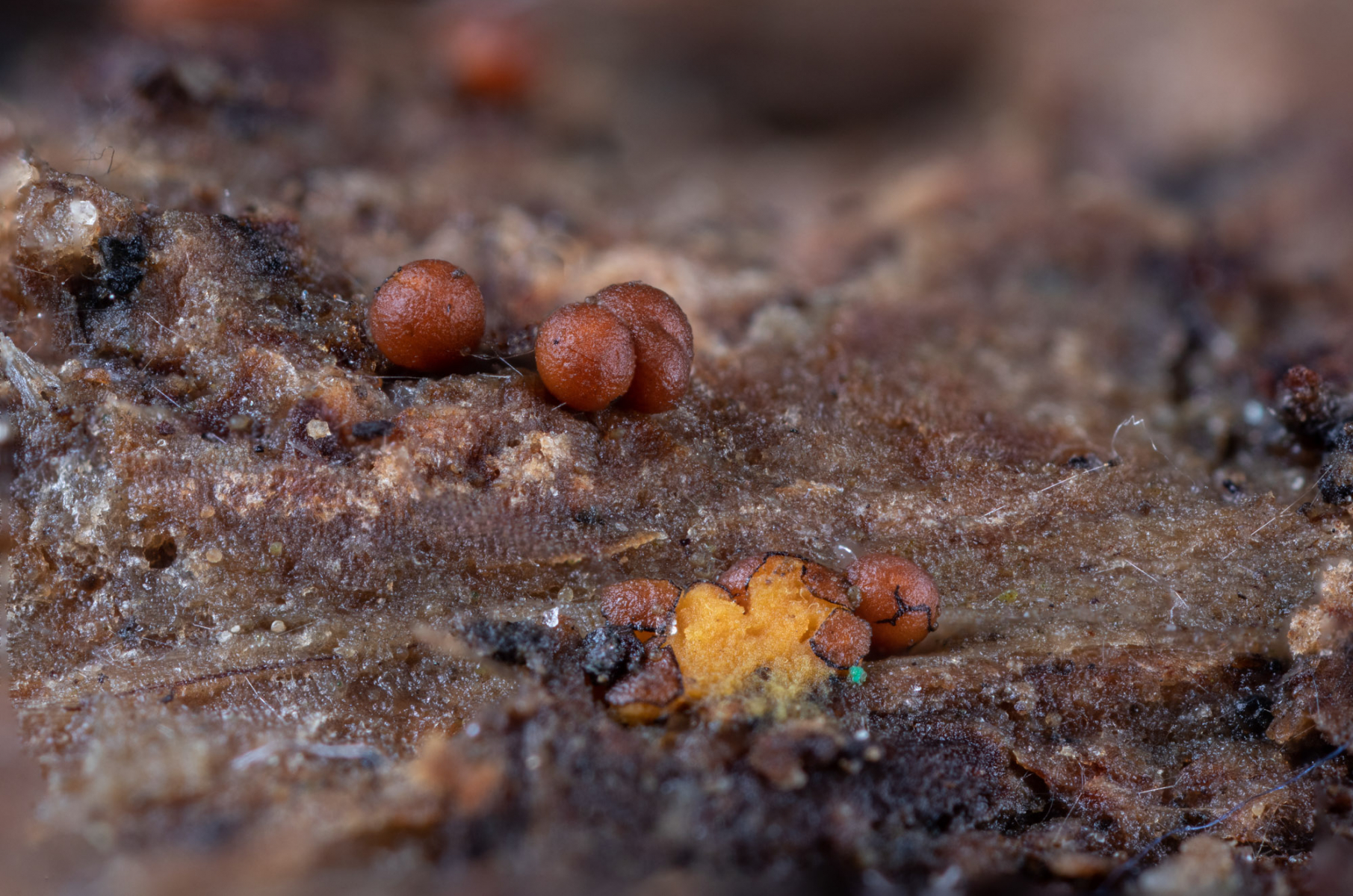 Die dritte Art kann (an vermoderndem Pflanzenstängel) ich aber nicht zuordnen. Schon während des Reifens (die Sporokarpien waren noch weiß)