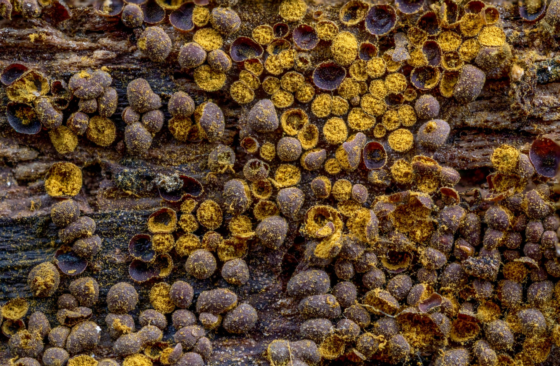 Obwohl die Fruchtkörper nicht groß sind, fällt das leuchtende Gelb (besonders vor der Reife) richtig auf.