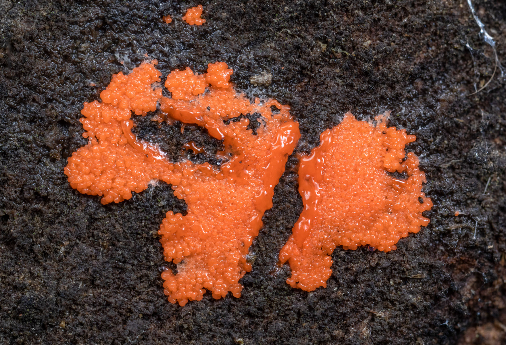 diesen Schleimpilz habe ich auf einem Rindenstück am Waldboden gefunden.