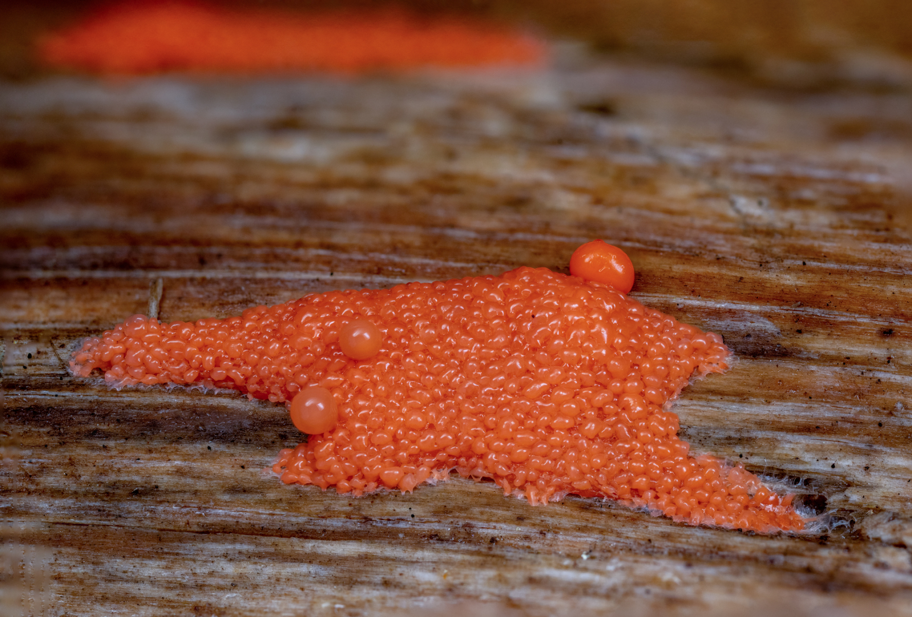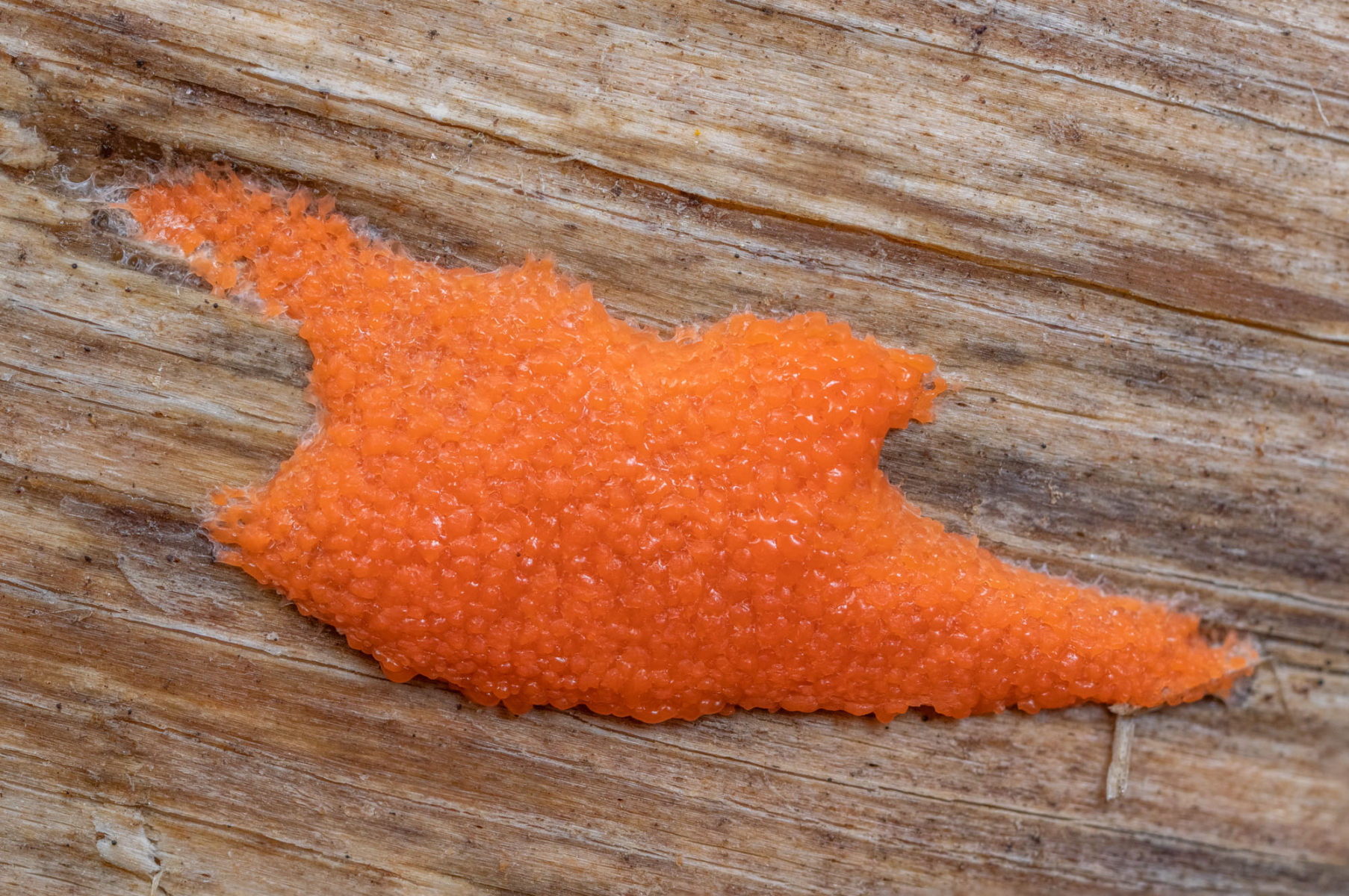 diesen Schleimpilz habe ich erstmals am 24.10. 20 auf der Unterseite eines liegenden, morschen Laubbaumstammes entdeckt.