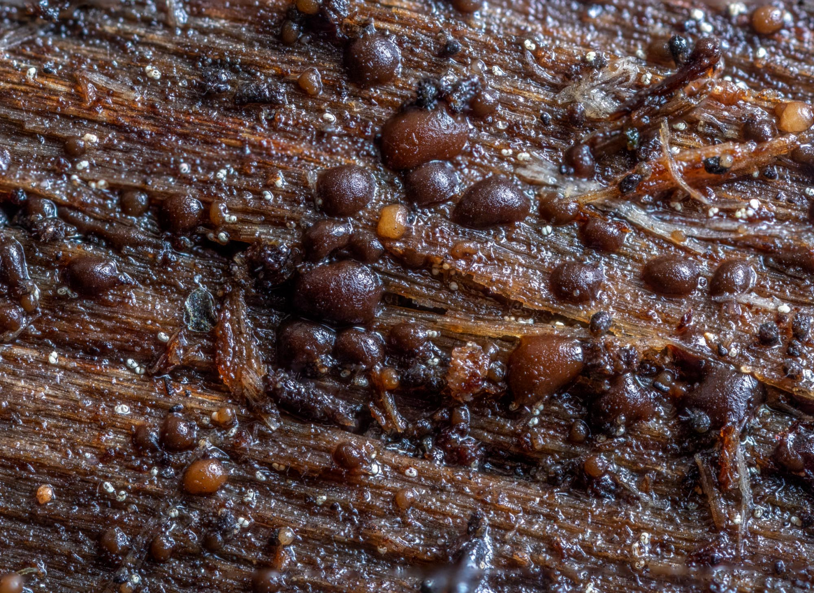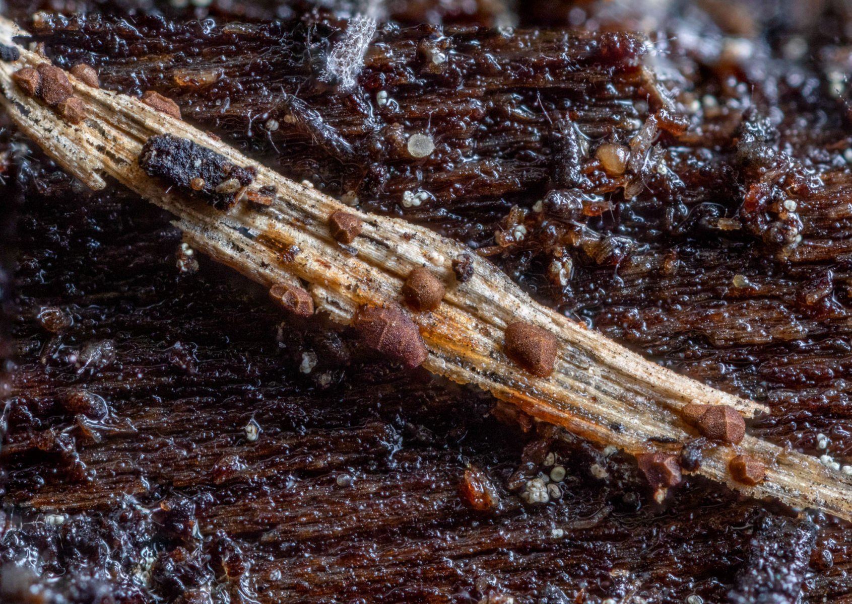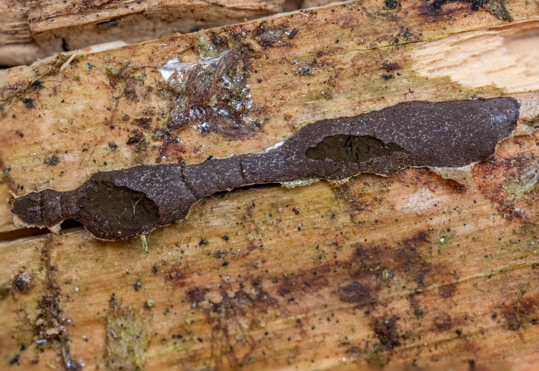 Die Sporocarpien gingen auf Efeu und die darunter liegende Rinde einer Kiefer.