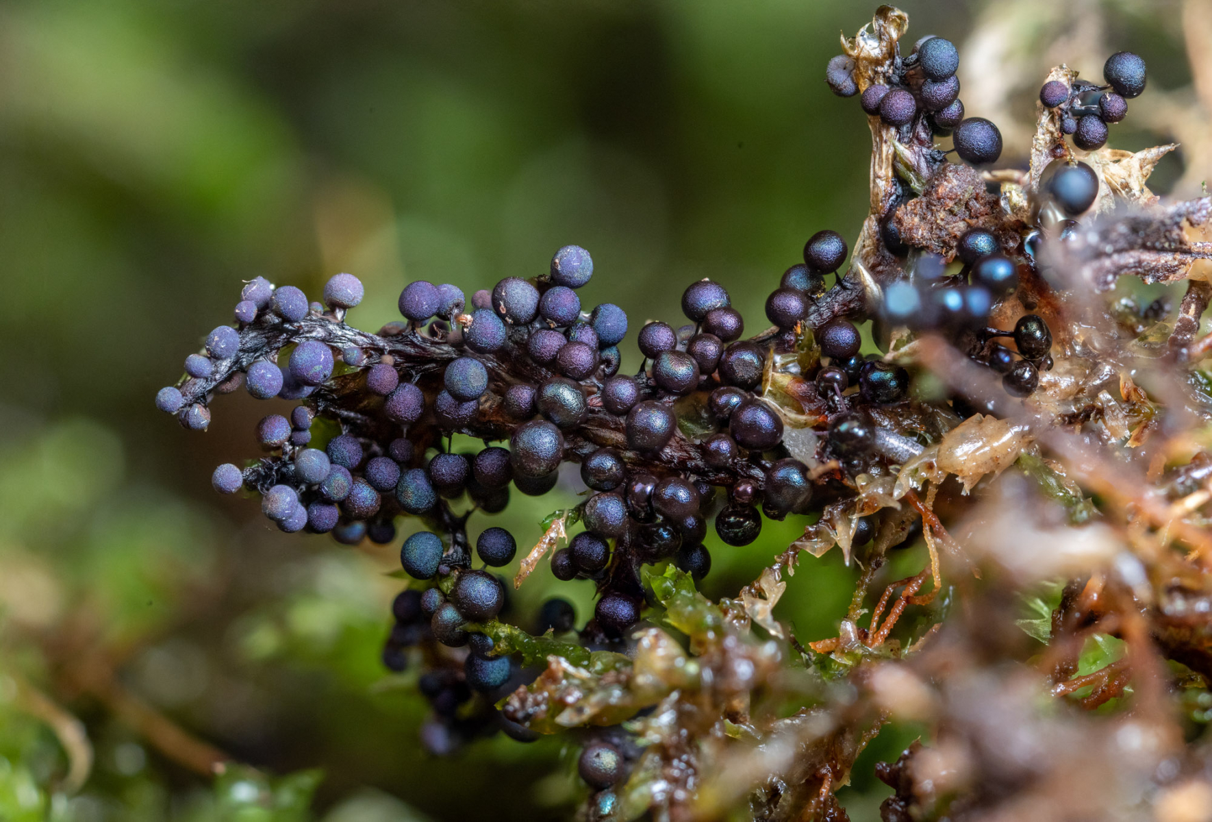 wären einige Sporocarpien wegen mangelnder Reife nicht noch weiß gewesen, hätte ich diesen Schleimpilz sicher nicht am Waldboden (3.11.20; Laubwald; auf Moos und Falllaub) entdeckt.