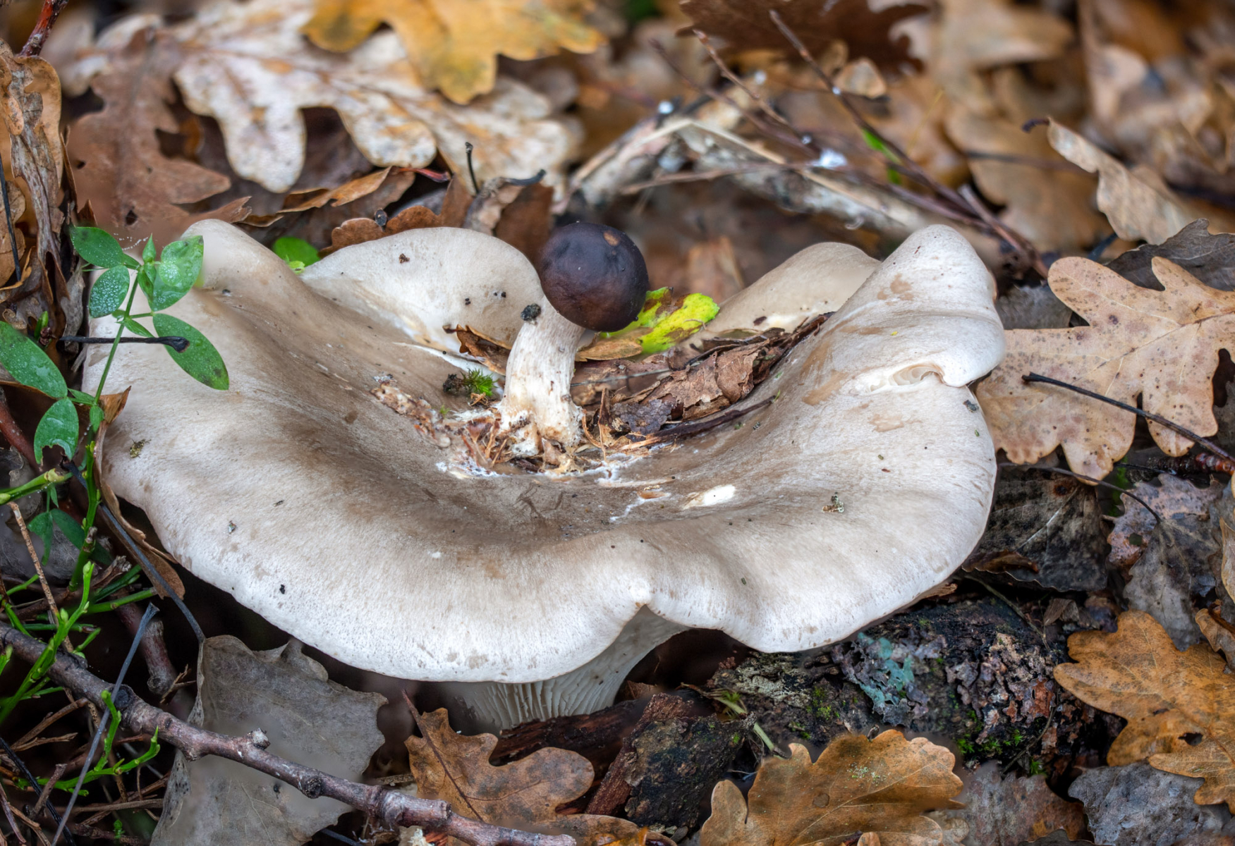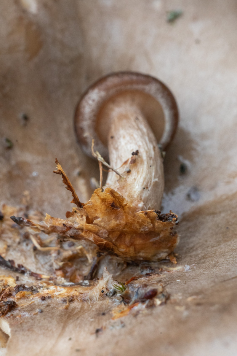 Der Birkenpilz wuchs wohl nicht auf der Nebelkappe, sondern die Nebelkappe wuchs wohl unter dem Birkenpilz!