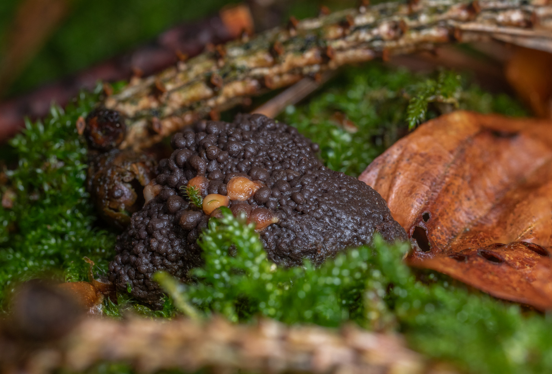 Trotz seiner Größe (etwa 2 cm im Durchmesser) kann ich diesen Schleimpilz leider nicht eindeutig zuordnen.