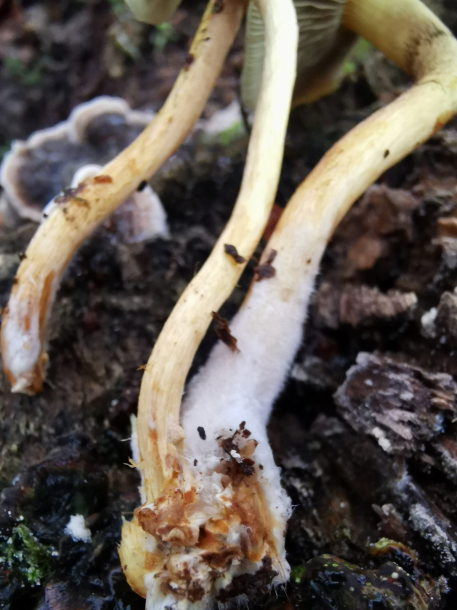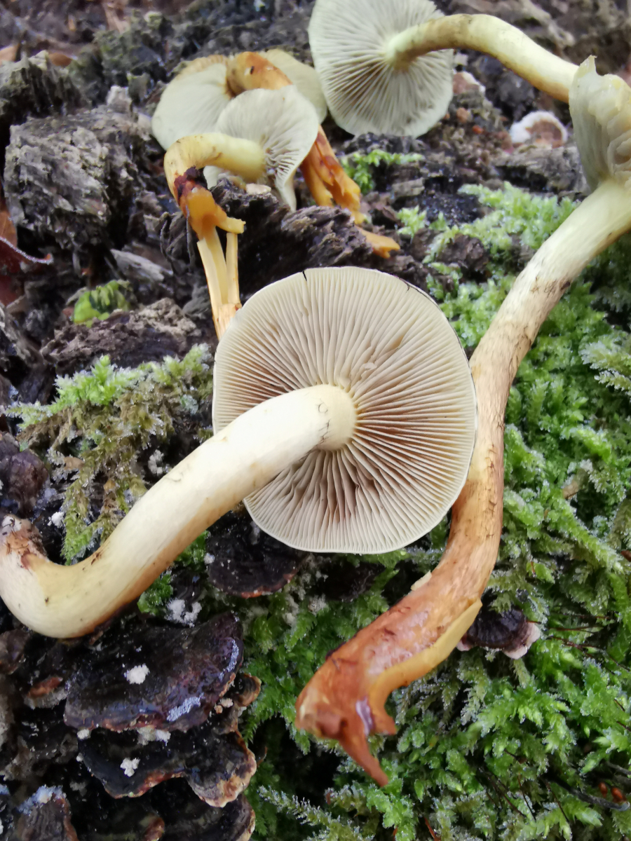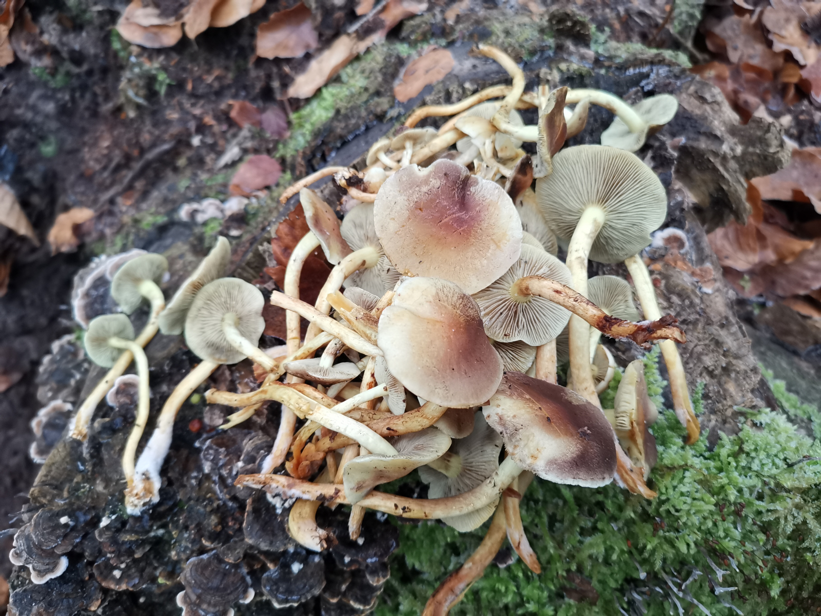 Ich war heute unterwegs und habe ein paar Pilze gefunden. Sind das Samtfußrüblinge? Wuchsen auf einem umgekippten Baumstumpf.