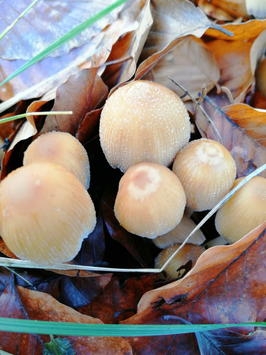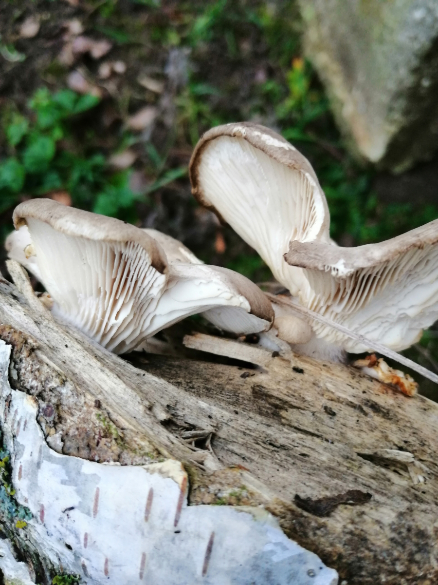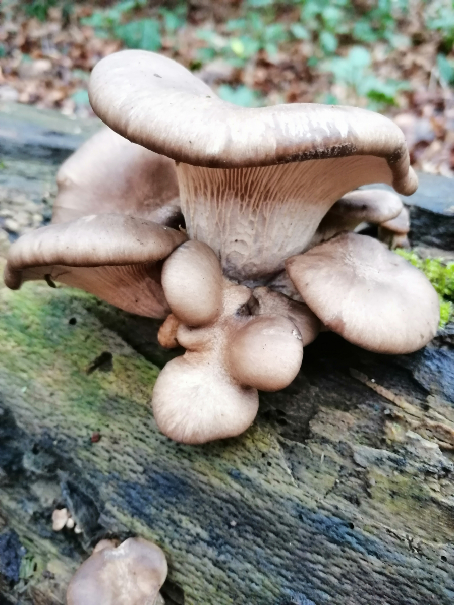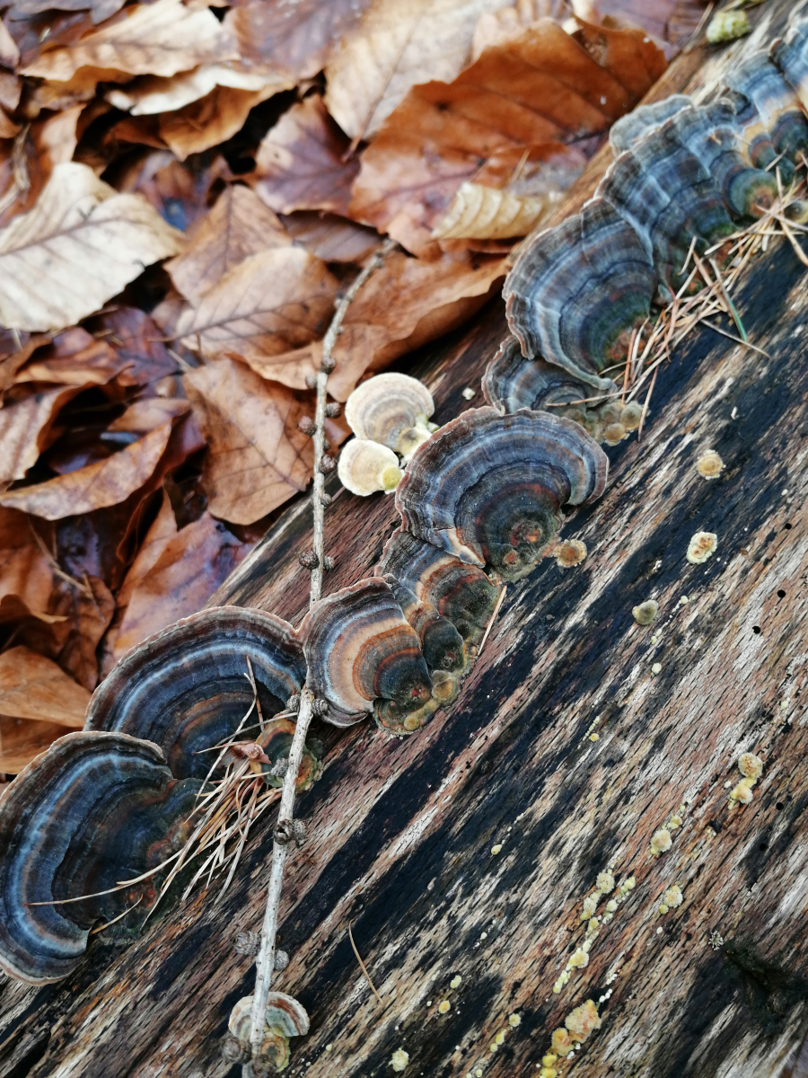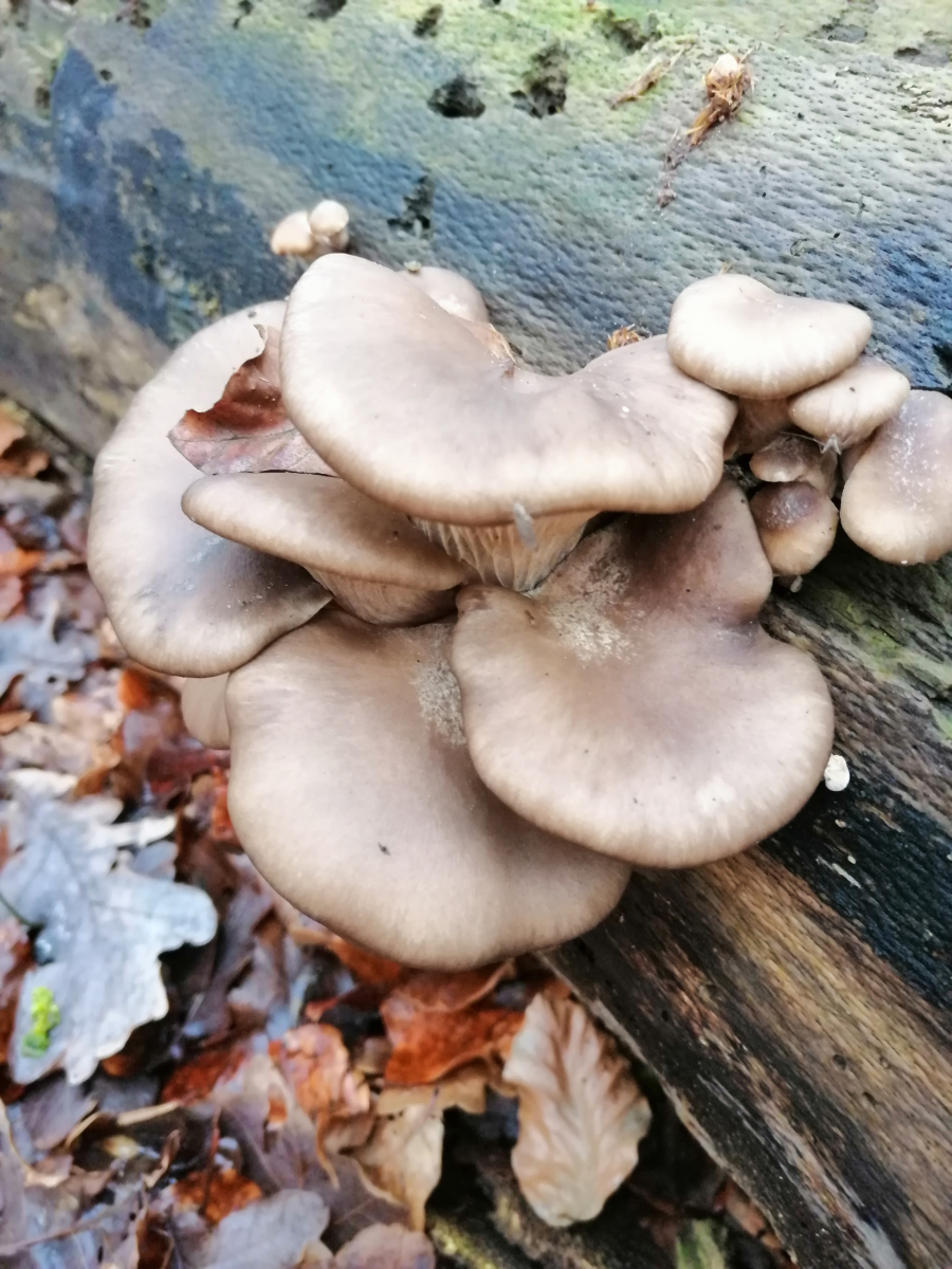 Bin in einem Mischwald mit Buchen und Fichten und an einem alten Baumstamm habe ich diese Pilze entdeckt.