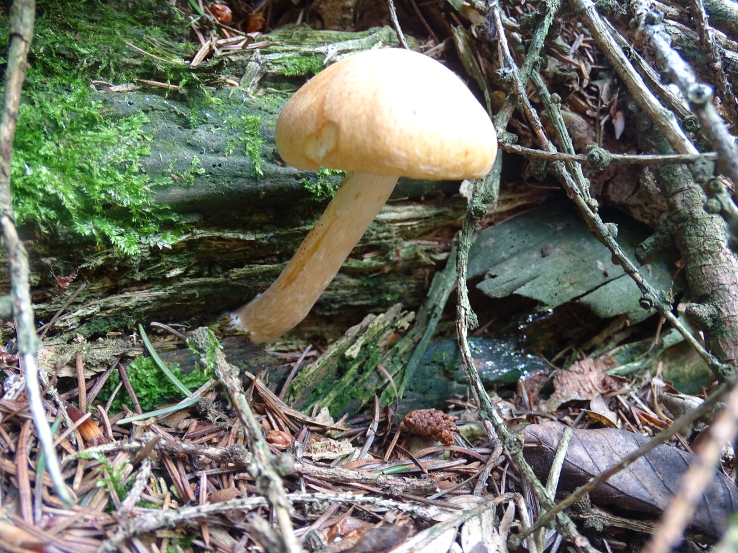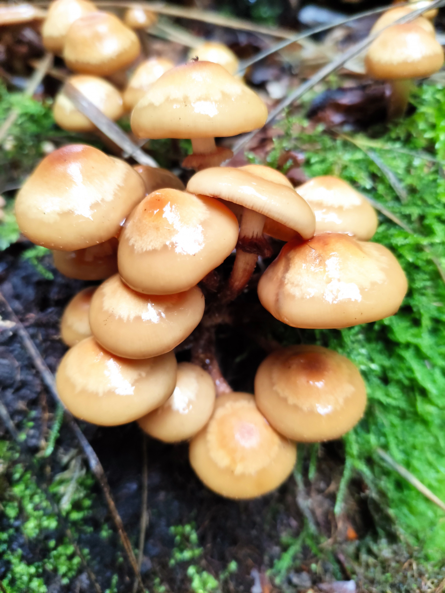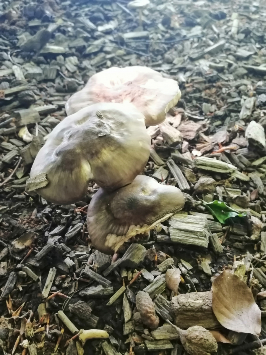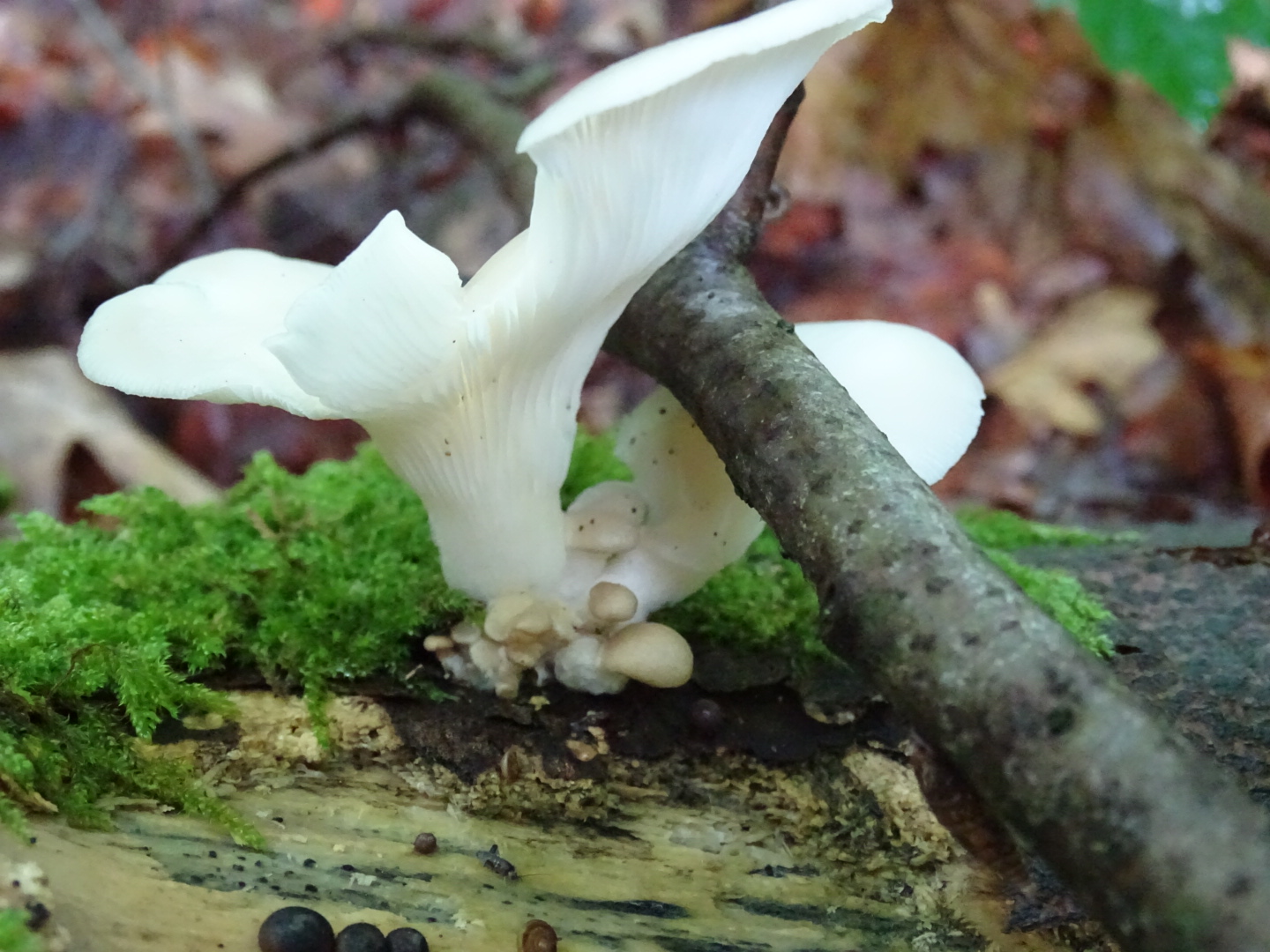 Bin in einem Mischwald mit Buchen und Fichten und an einem alten Baumstamm habe ich diese Pilze entdeckt.