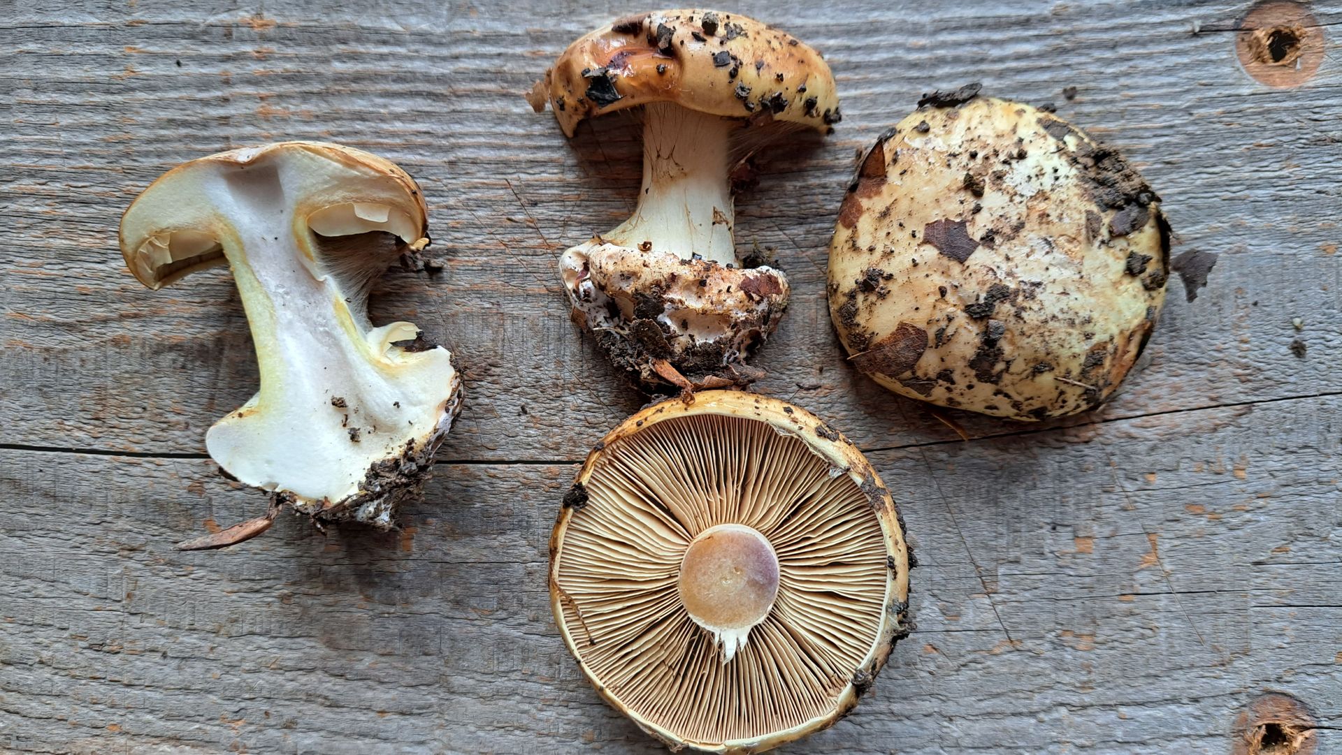 Mit Basalfilz meine ich den weißen Filz auf der Unterseite der Knolle. Vor der Testung muss man vielleicht noch vorsichtig die Erdreste entfernen. Bei Phlegmacien braucht man für die 3 Farbreaktionen (Hut, Fleisch und Basalfilz) nur KOH.