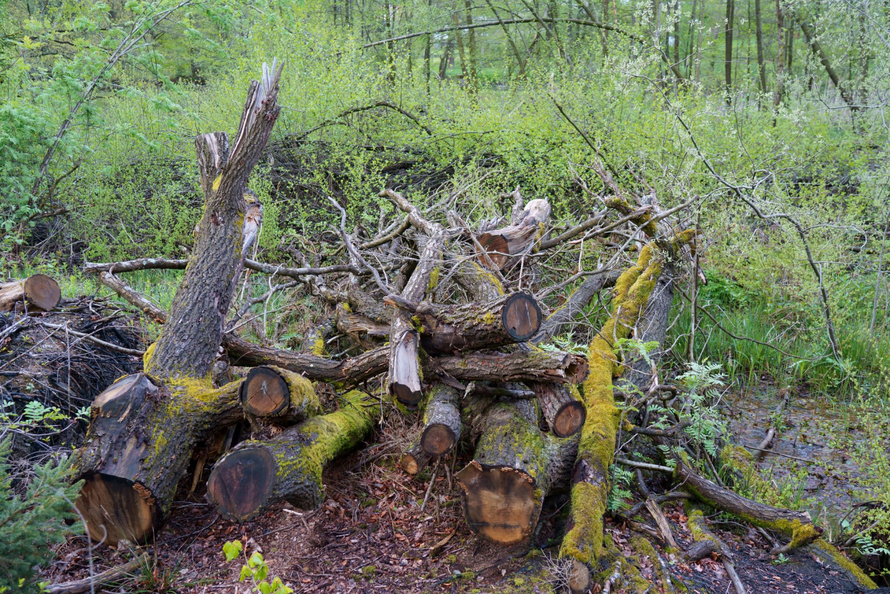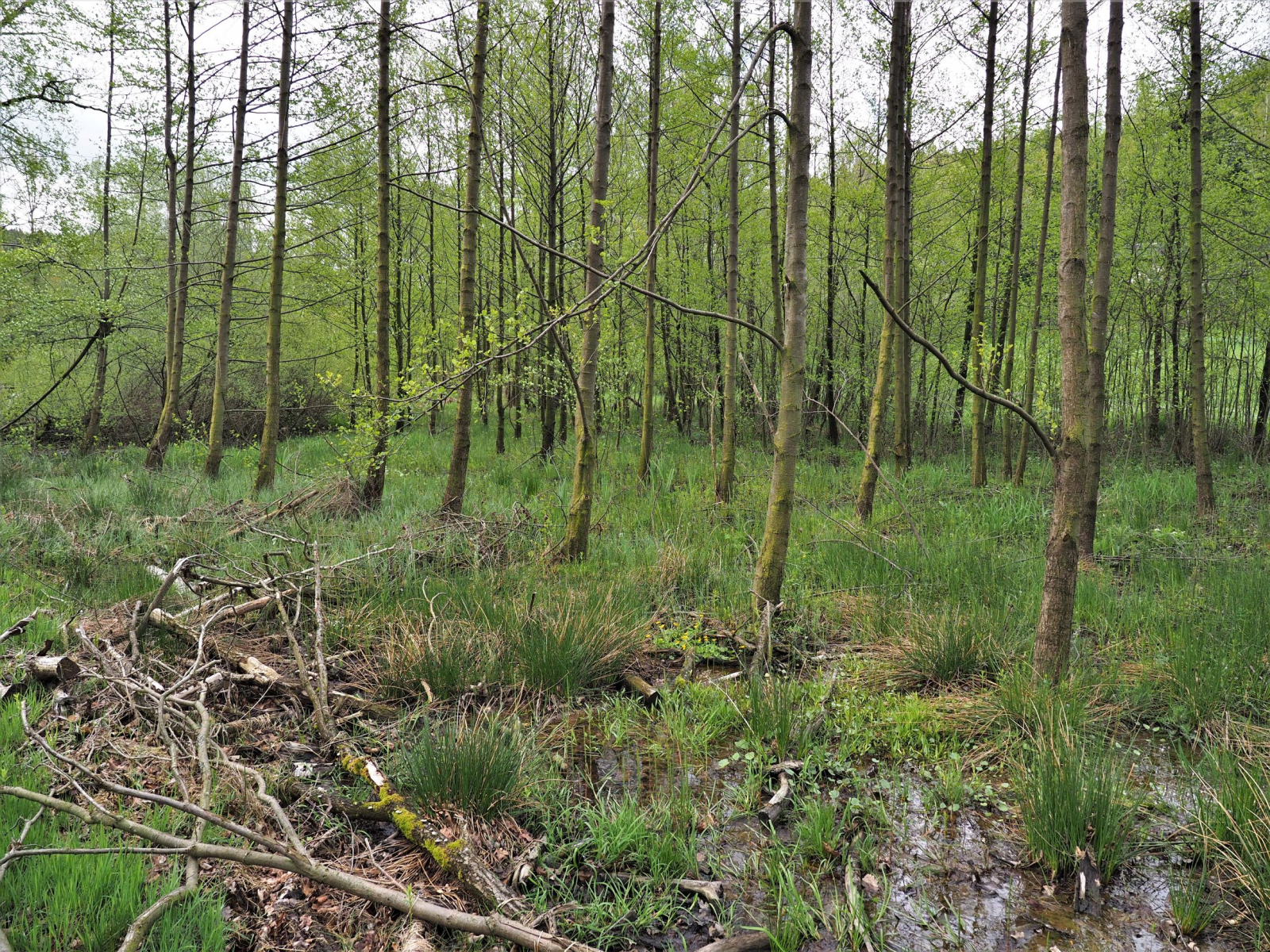 Ich fahre alle 3 Wochen ins Gebirge, um dort bei einem Traditionsbäcker Brot und Brötchen einzukaufen. Wenige Kilometer entfernt gibt es einem Sumpfwald, in dem ich heute mal nach Sumpfhaubenpilzen geschaut habe. Es waren allerhand Exemplare da, aber wegen forstlicher Beeinträchtigungen einer angrenzenden Fläche nicht so toll wie vor 2 Jahren. Der private Waldeigentümer hat Holz-Abfälle in den Sumpf geschoben. Das blieb bis jetzt sanktionslos. Aber neue FND-Kennzeichen wurden installiert.