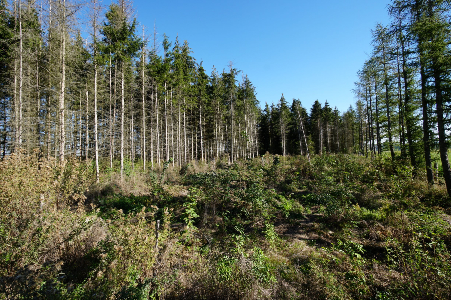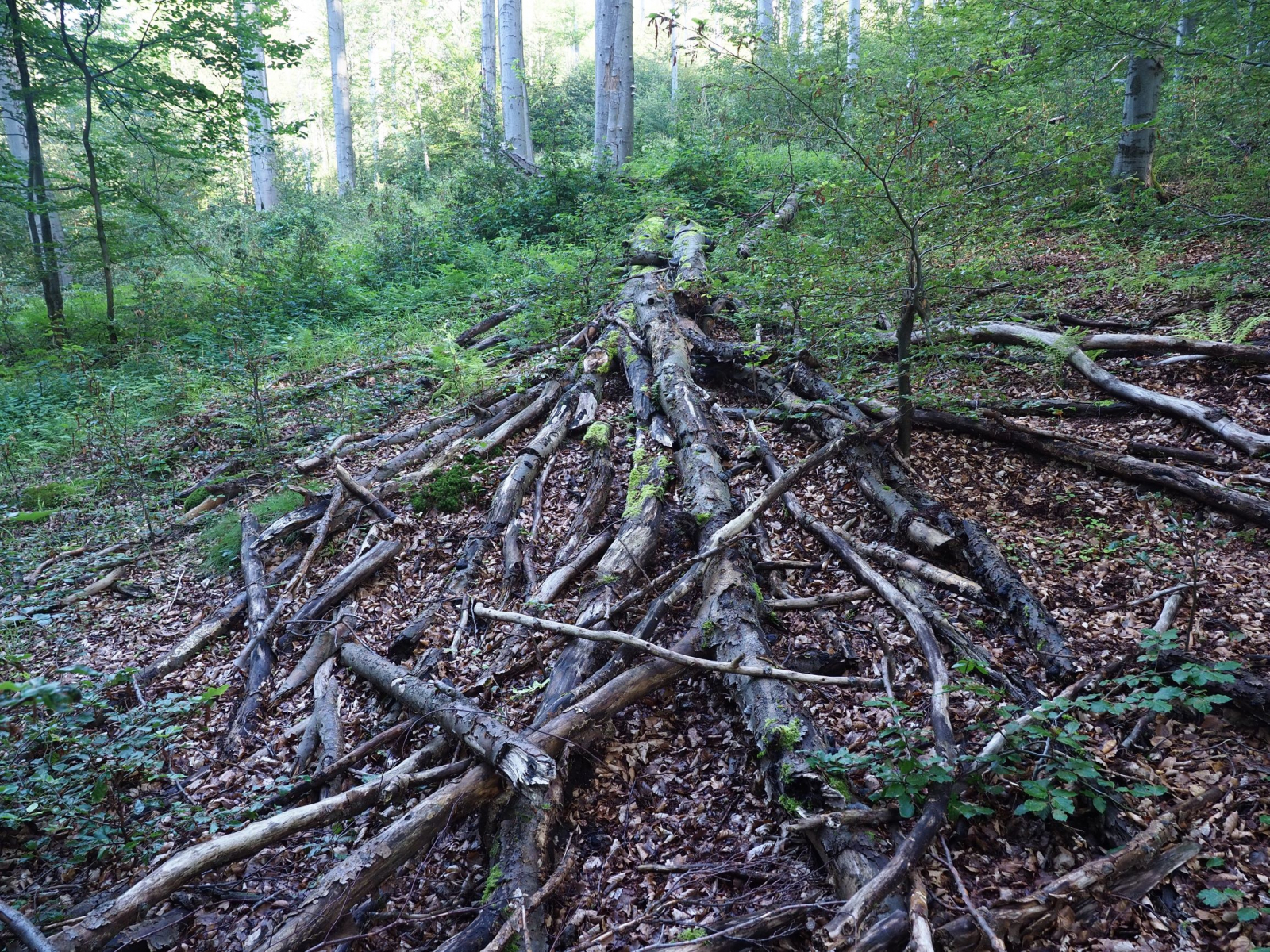 Vor 2 Wochen bei uns im Wald gebaut - ein völlig überflüssiger, ca. 200m langer "Weg" von 4 - 7 Meter Breite in einen Hang hineingekeilt, kiesiger Lehm ohne Tragfähigkeit, Den Waldeigentümer habe ich angezeigt, mir reicht´s langsam mit der immer stärkeren urbanen Überprägung der letzten Naturwinkel in unserer stark besiedelten Gegend. Das Schlimme ist, dass die Treuhand/BVVG diesem Kerl vor 20 Jahren ca. 70 ha ehemaligen "volkseigenen" Wald verhökert hat. Jetzt werden für diese Typen wieder Millionen an Steuergeldern zur Beseitigung von "Waldschäden" locker gemacht.