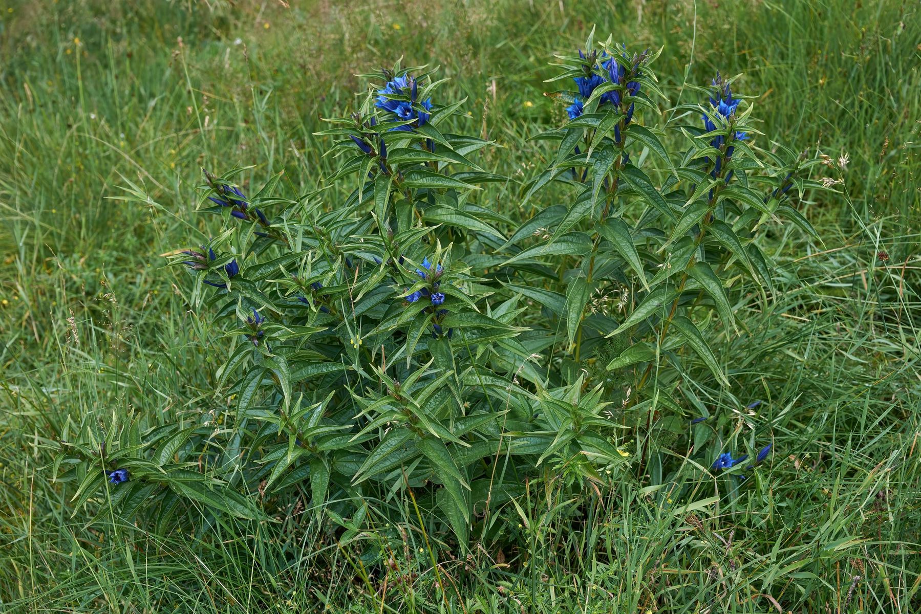 Ich meine die FK in der Mitte der Bildhöhe, rechte Bildhälfte. Goldgelbe Zitterlinge kommen für mich nicht in Betracht; schon vom Habitat nicht. Ich kenne die auch nur knallgelb auf eher dünnem Astwerk und ab Größen von 50mm und mehr. Die hier vorgestellten waren 4-5mm groß
