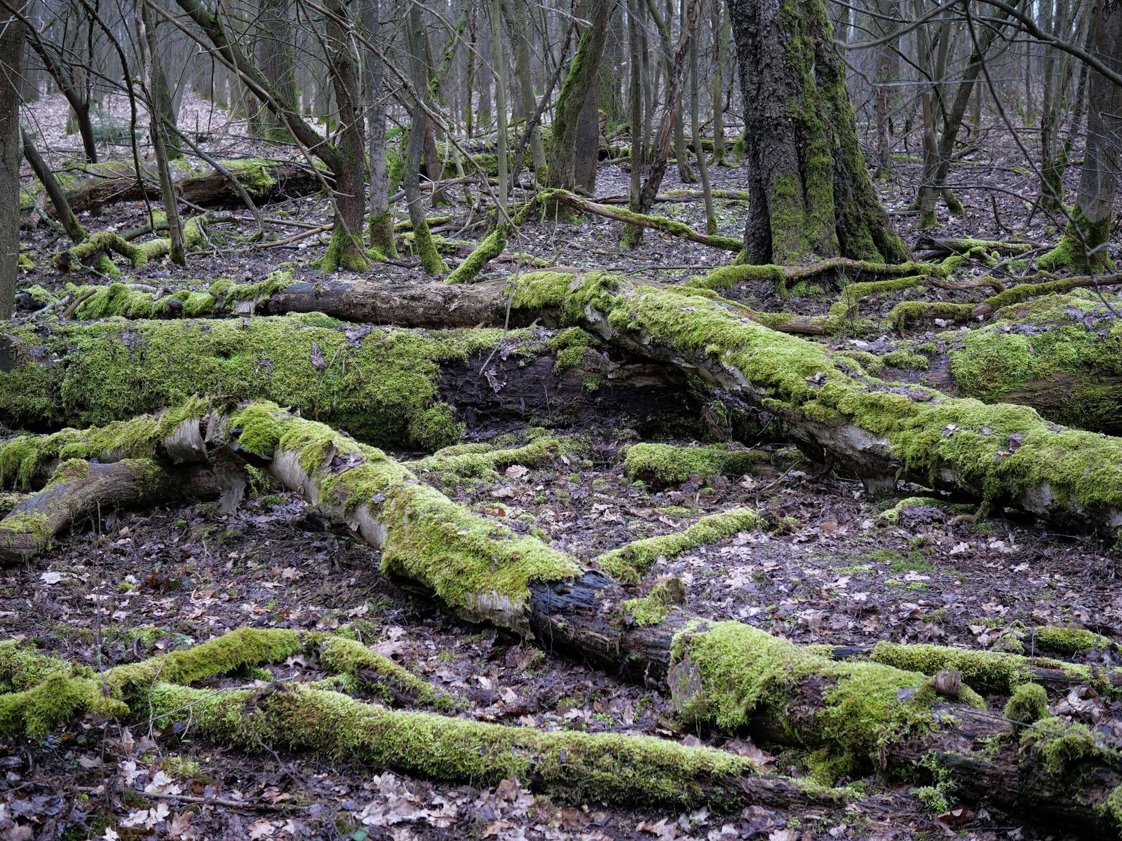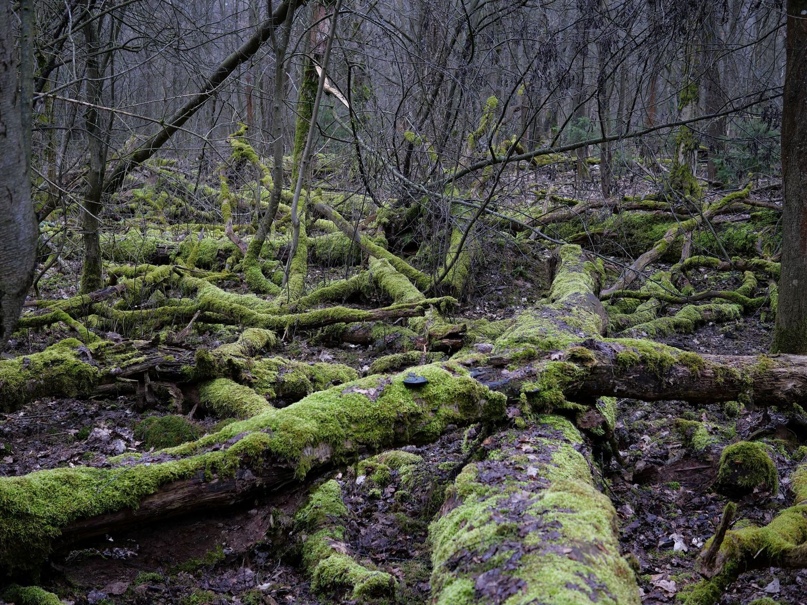 Im vorletzten Winter hatte ich einen herrlich "liederlichen" Laubwald in der Agrarwüste des Erzgebirgsbeckens entdeckt, den ich gestern, zu bester Pilzsaison, mal wieder aufgesucht habe. Neben einigen anderen Arten bot sich mir eine 3-4 qm große Fläche voller Fadenkeulchen (Typhula spec.) dar.