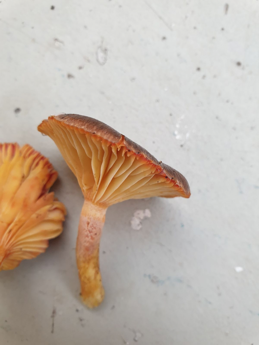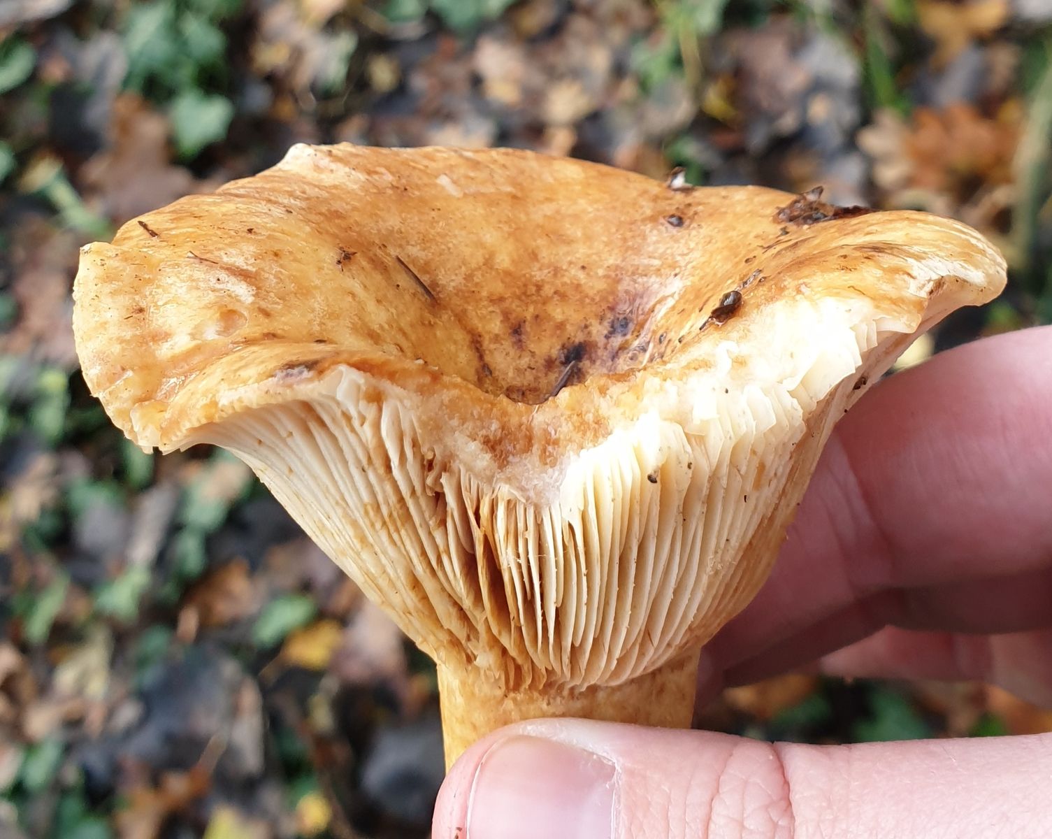 Inzwischen bin ich mir nicht mehr sicher, ob es sich um einen Milchling handelt oder nicht doch um einen Täubling, da ich bei Verletzung keinerlei Milch austreten sah.