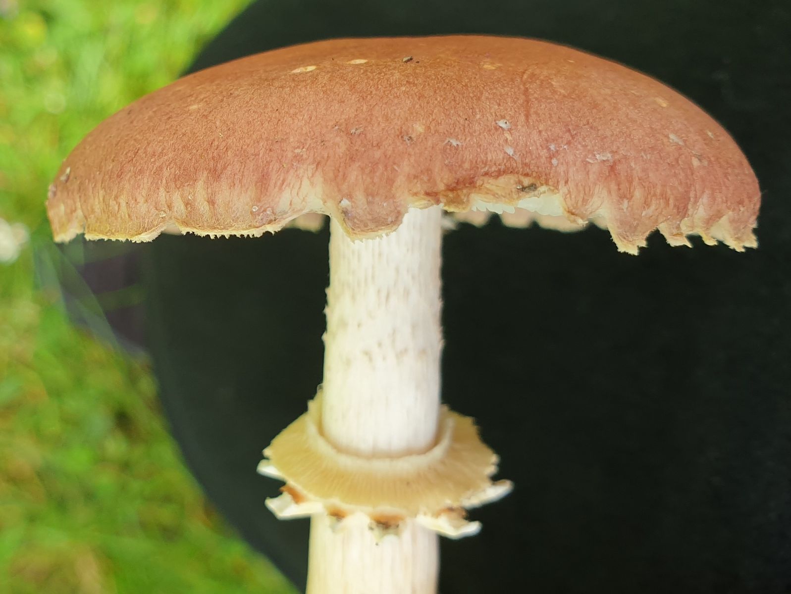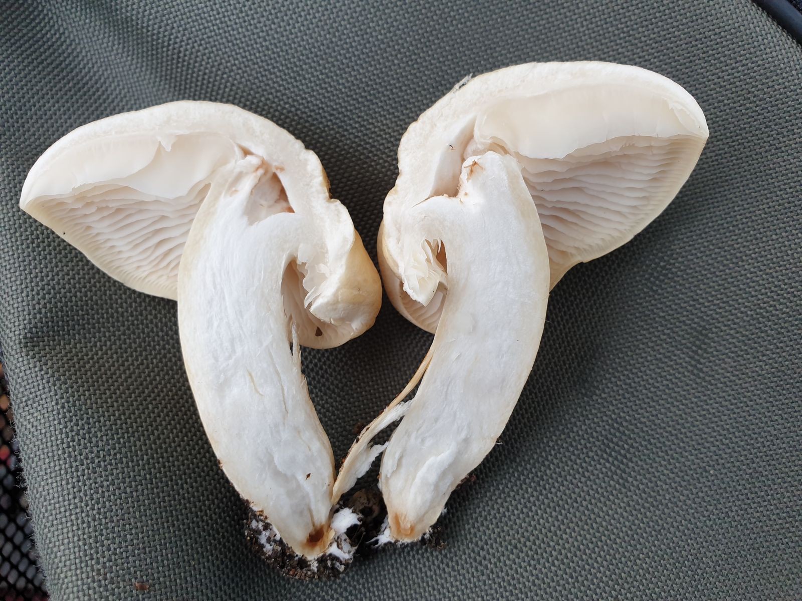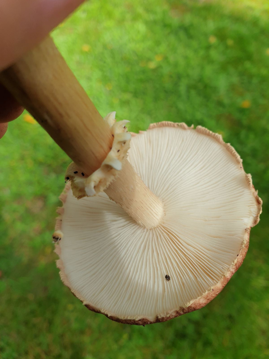 Kein Wunder, dass ich bei der Bestimmung nicht vorankam, denn ich ging von weißlichem Sporenpulver aus. Bei der Größe des Exemplars hätte ich erwartet, dass die Lamellen schon dunkler wären.
