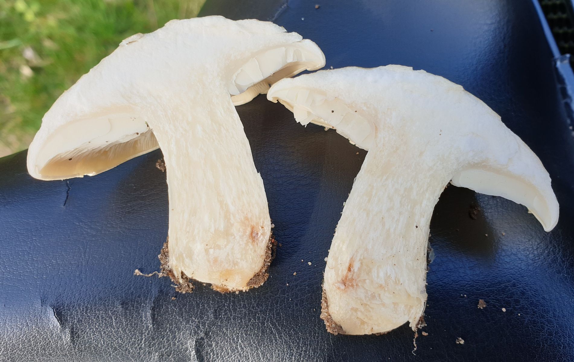 -Keine reinweißen Exemplare gefunden, Stiel und Hutmitte mehr semmelfarben