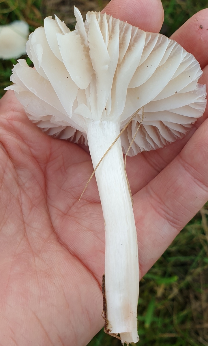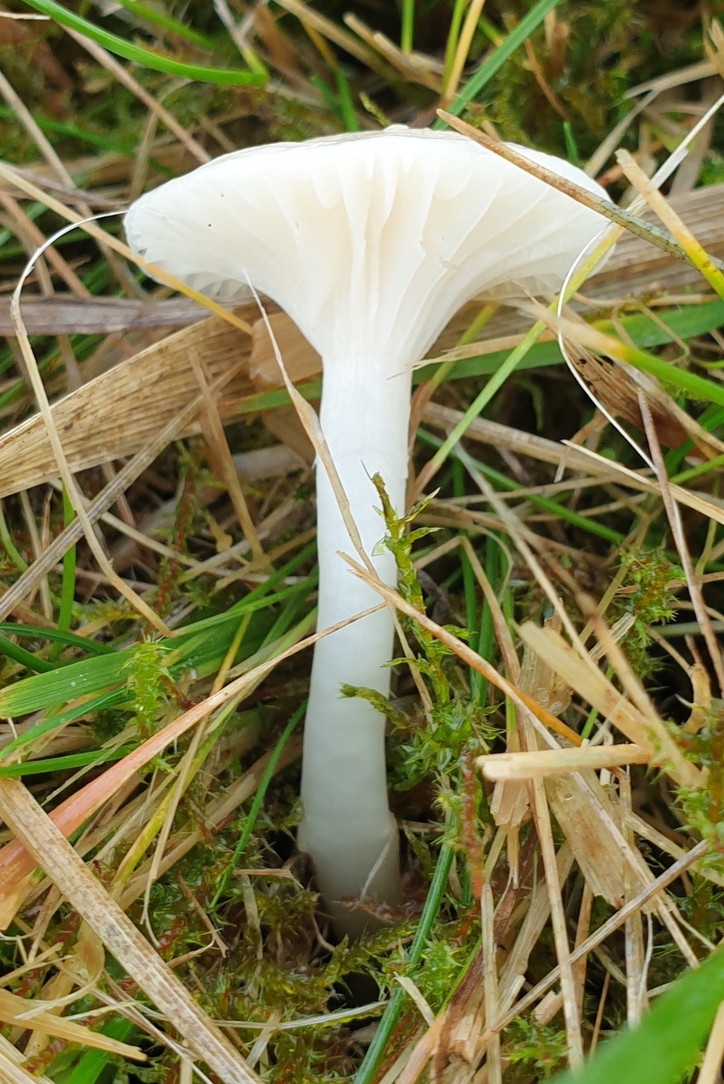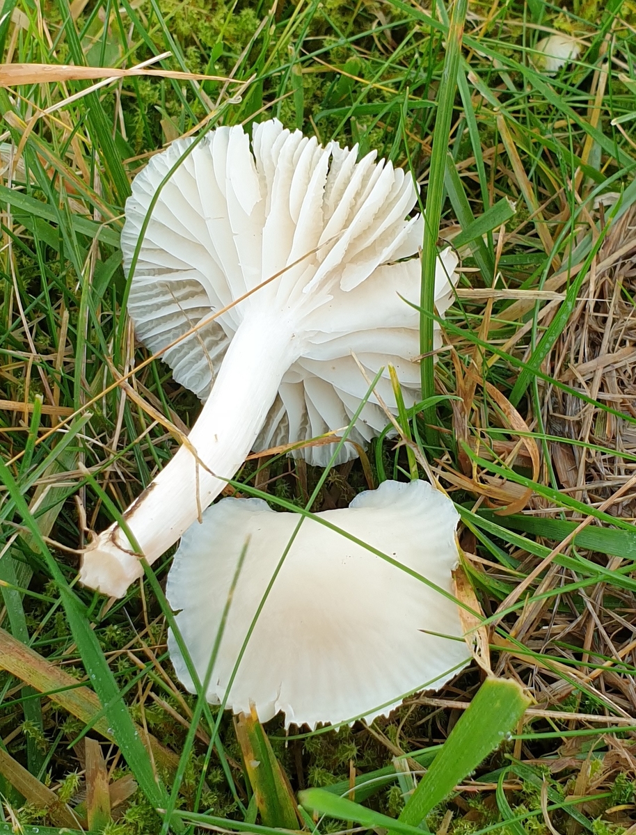 ebenfalls an einer Schafweide fand ich diesen fast weißen Pilz - Nur die Huthaut ging etwas mehr ins Hellbraune.