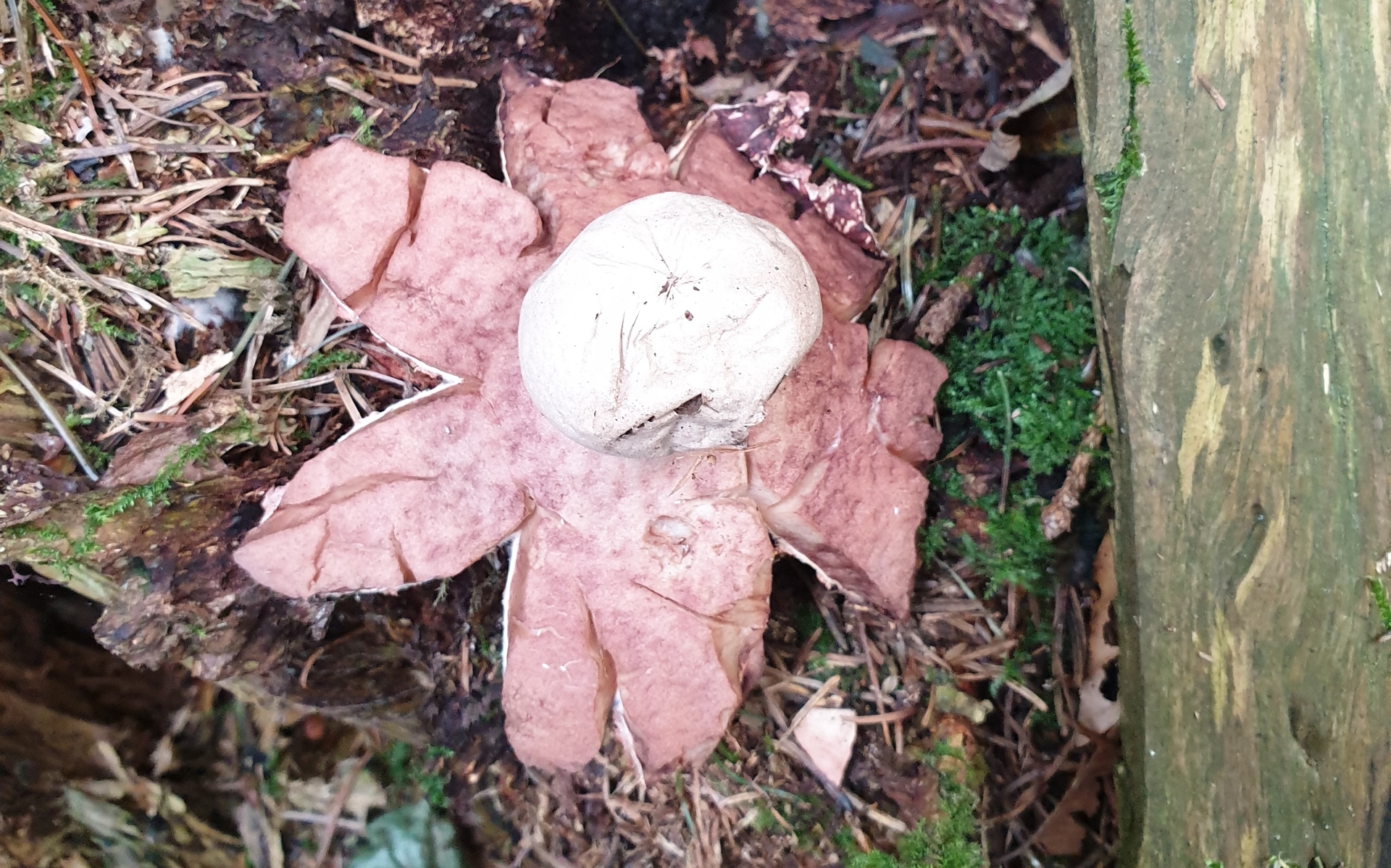 Könnte es sich hier um den Rötenden Erdstern handeln? Die Farbe war jedenfalls eindeutig rosarot ![]()