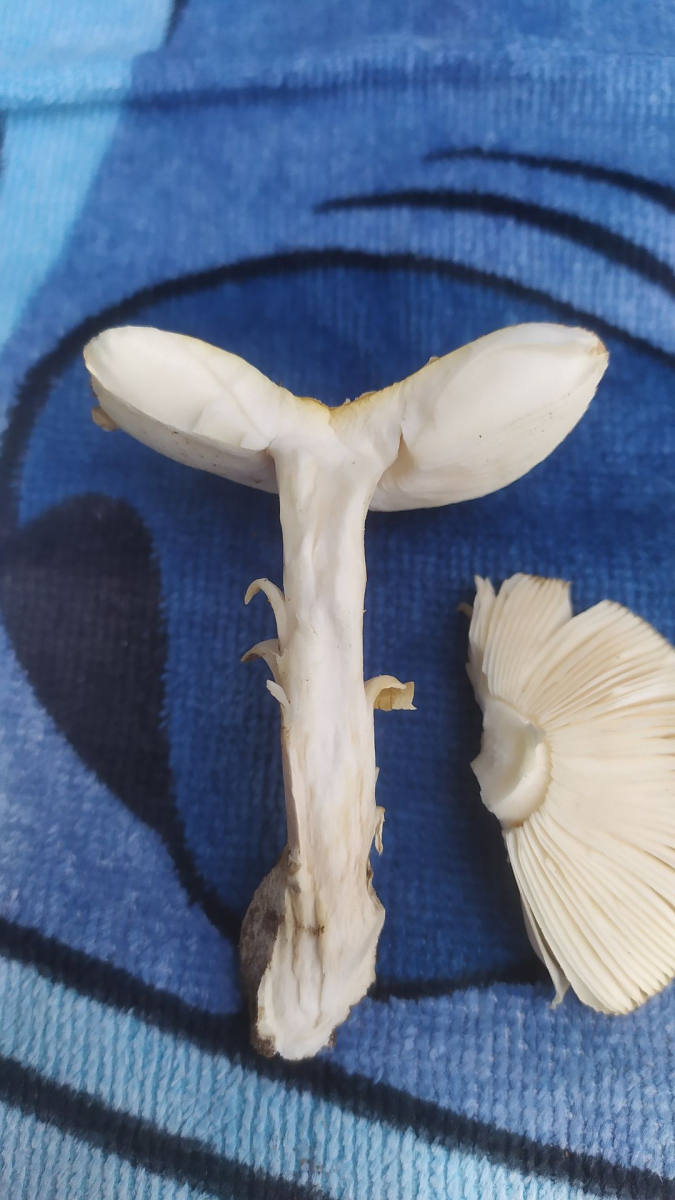 Stiel: kräftige stiele, sehr zäh (bild 7) und wässrig, dass ich sogar mehrere wassertropfen rausquetchen konnte (bild 8) und bei dem größeren exemplar etwas flockig? (Sieht aus wie genattert) (bild 6), konnte man abwischen mit dem finger