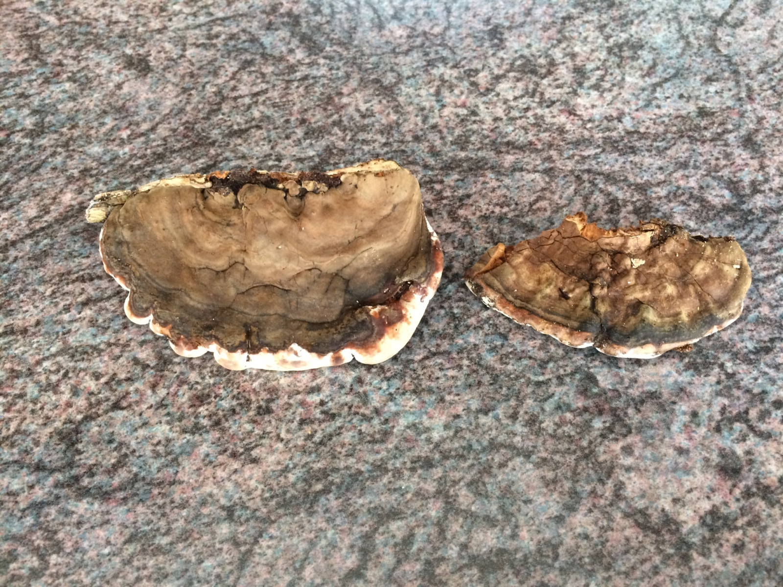 ich habe schon seit längerem nach so einem Pilz Ausschau gehalten aber mir ist noch nie einer untergekommen. Und jetzt wo ich glaube welche gefunden zu haben, bin ich mir nicht sicher ob es wirklich welche sind. Deshalb die Frage: Liege ich mit Flachen Lackporling richtig? Der kleinere helle wuchs auf dem gleichen Stamm, wird wohl auch einer sein, obwohl er eher wie ein Zunderschwamm aussieht.