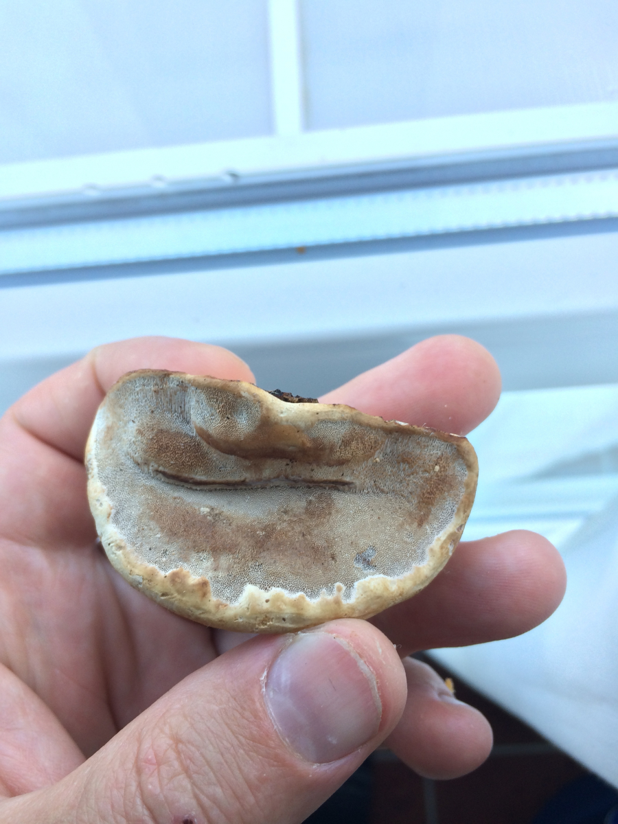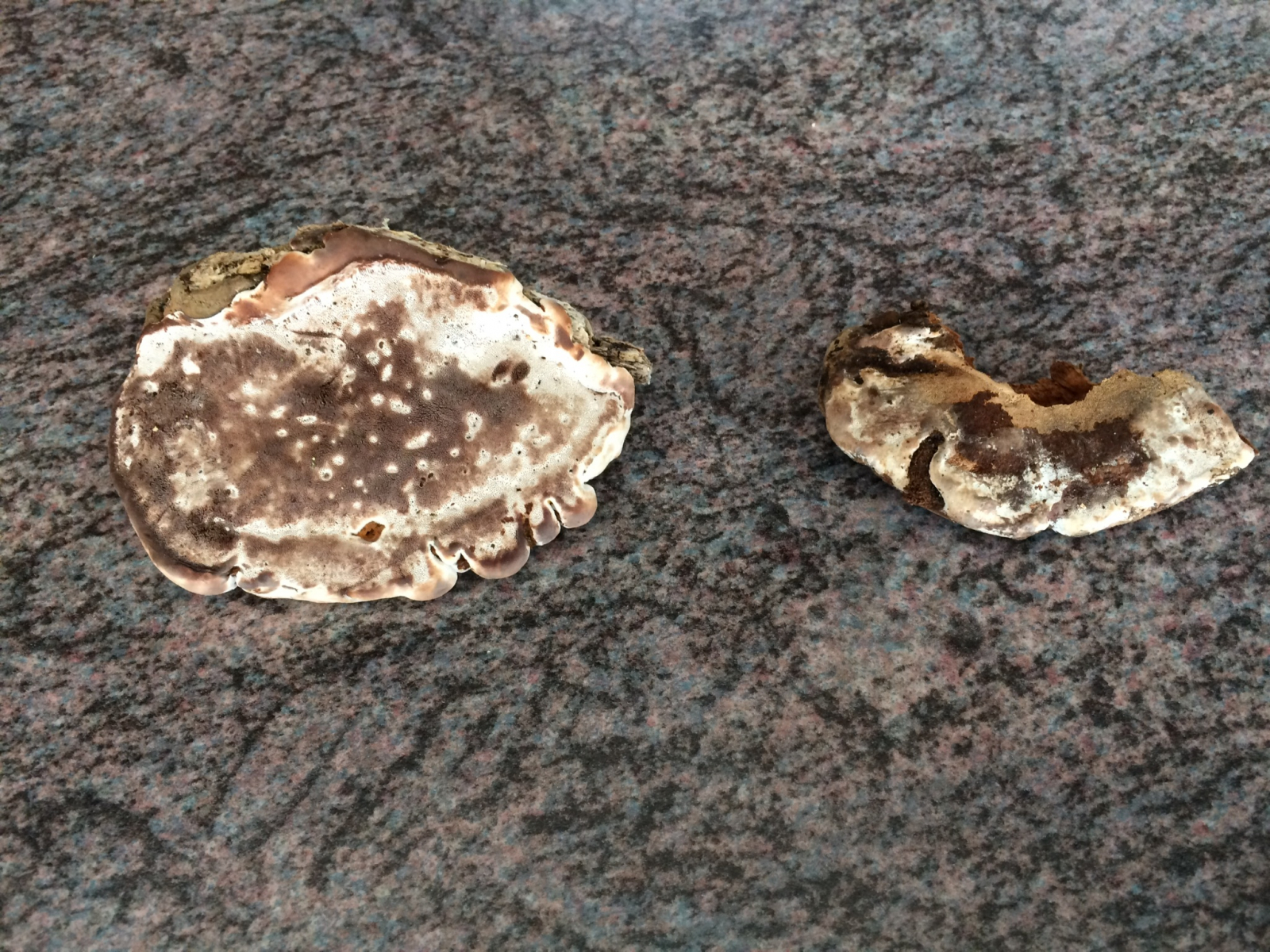 Ich habe ein paar Fragen zu einem Pilz den ich vor ein paar Wochen an einer umgefallen Birke entdeckt habe. Also für mich sieht er wie ein echten Zunderschwamm aus aber mich verunsichern die weißen Stellen die fast überall im Pilz sind(siehe Bilder). Wenn die nur in der Porenschicht wären dann hätte es mich nicht gestört, da die Sporen ja auch weiß sind. Aber diese Stellen sind in der Trama und auch in Myzelialkern. Und Trama ist ziemlich hart und holzig wegen dieser Stellen. Meine Fragen: