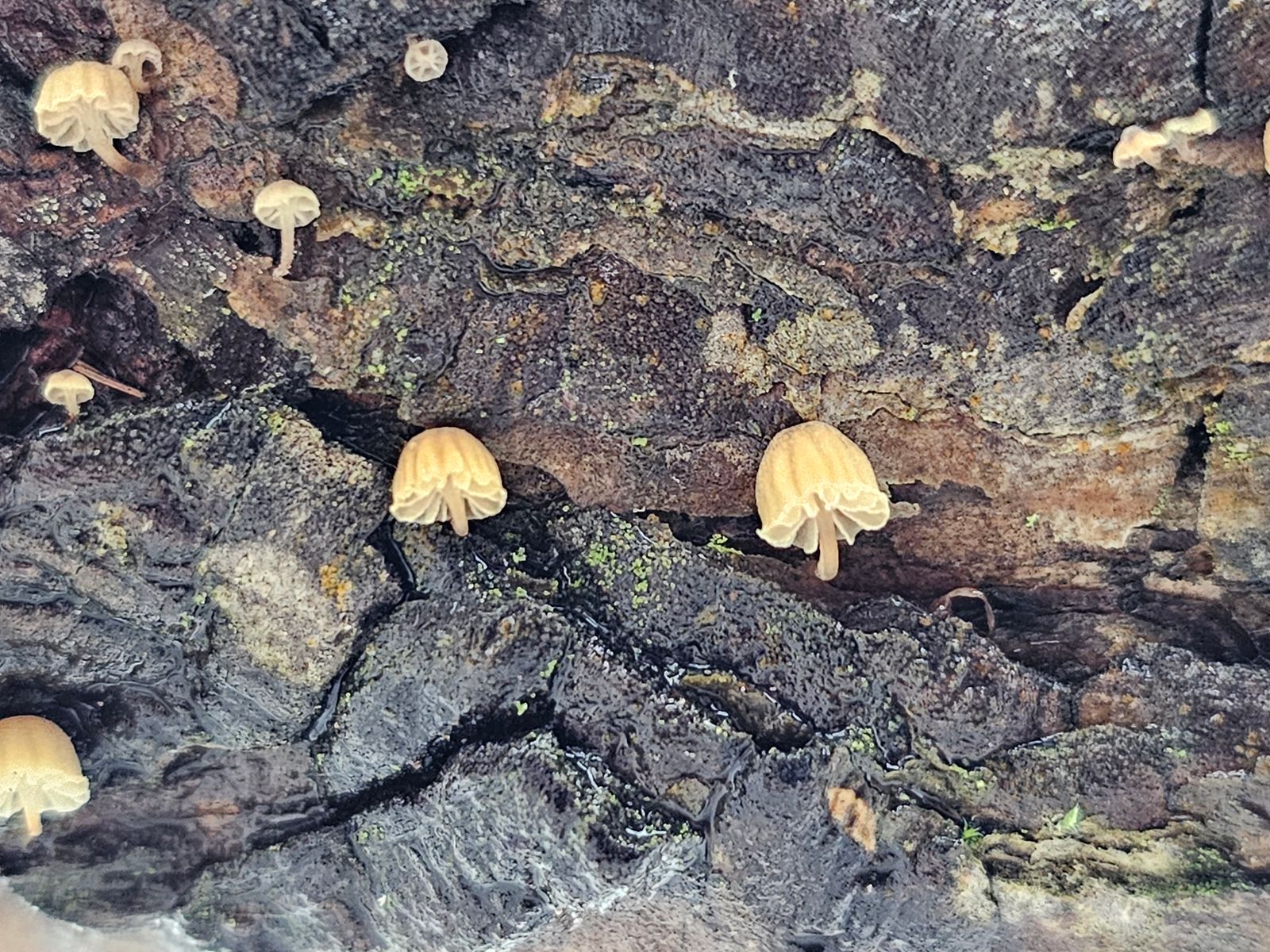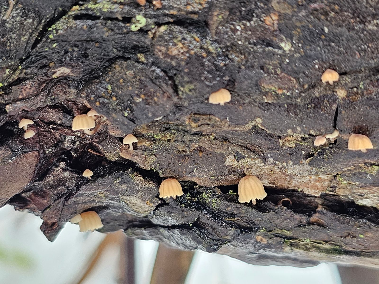 1: Ein winziger Helmling auf Totholz, wie sich später herausstellte muss es Wacholder sein.