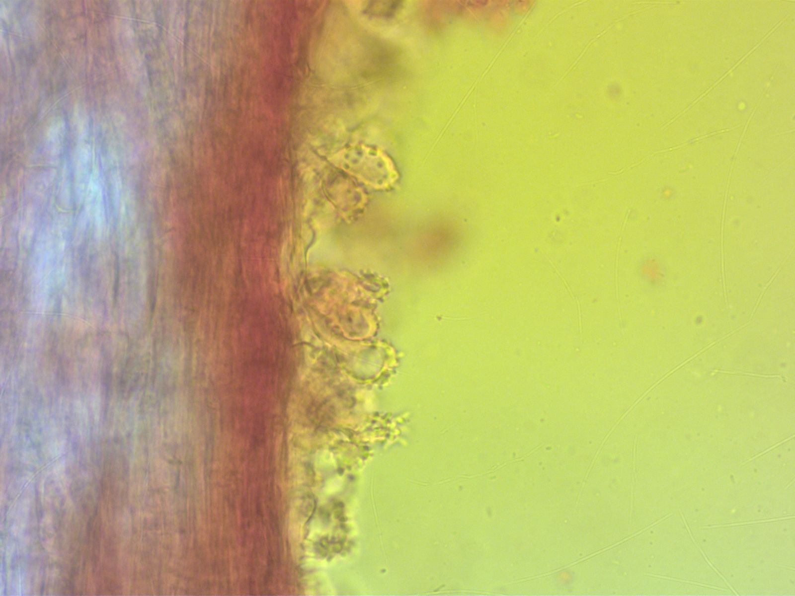 Cheilozystiden im oberen Bereich mit zahlreichen, teils geweihförmigen Auswüchsen