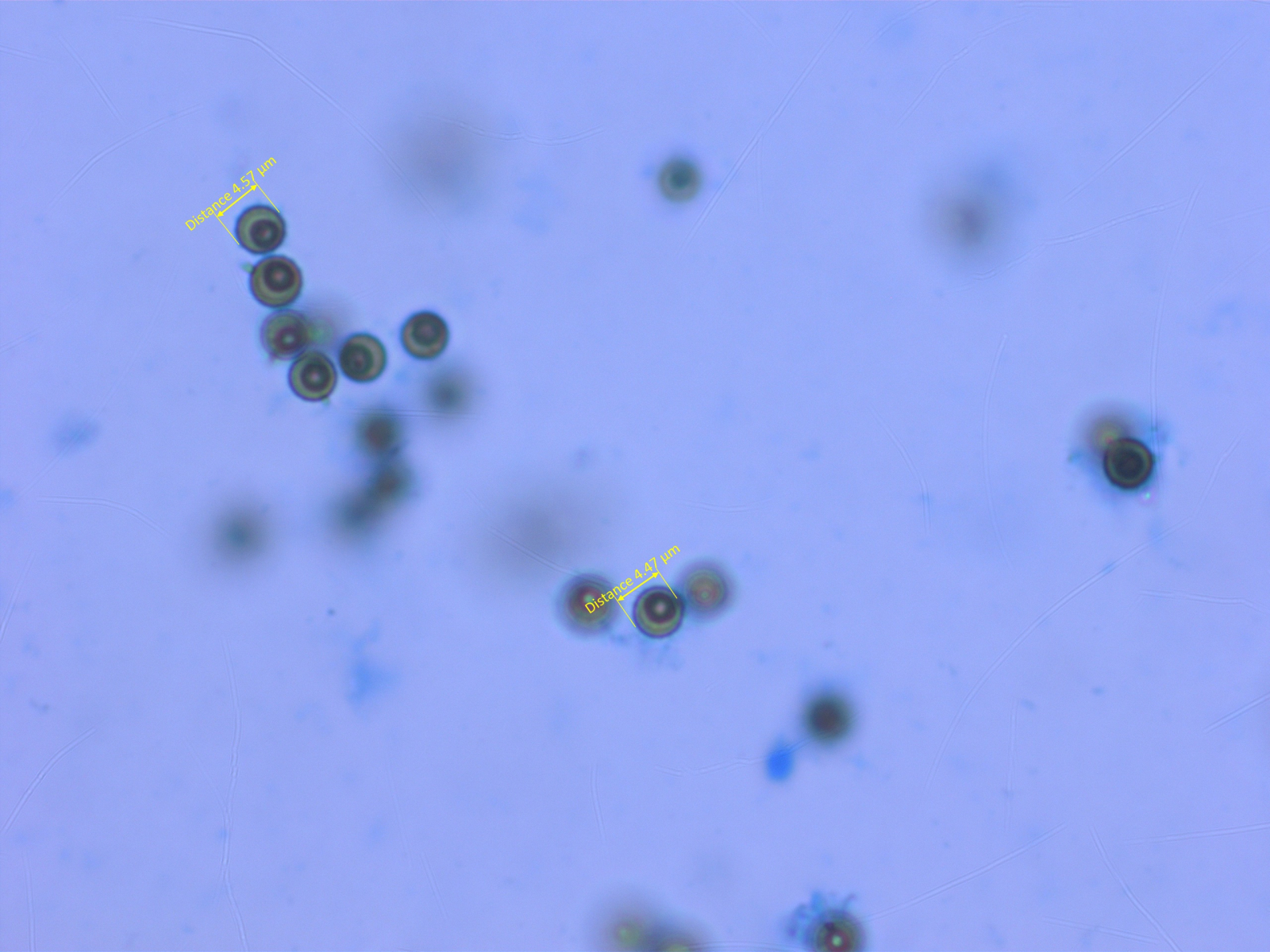 Nachtrag: Hier noch zwei Bilder der Sporen in Baumwollblau. Da sieht man auch eine "stehende" Spore, die wirkt n-eckig ähnlich wie bei Clitopilus.