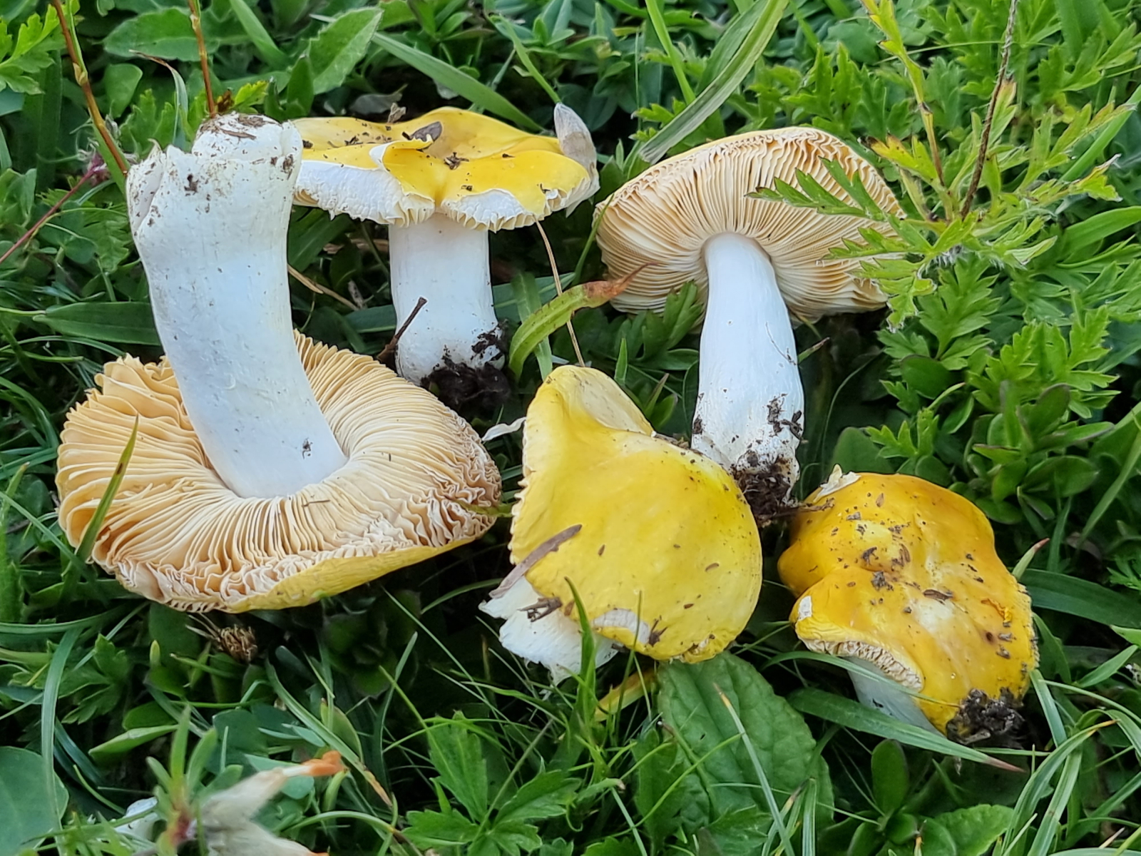 Wunderschön gefärbt, erinnert entfernt an Goldtäublinge. Die recht dunklen Lamellen deuten auf dunkles Sporenpulver hin.