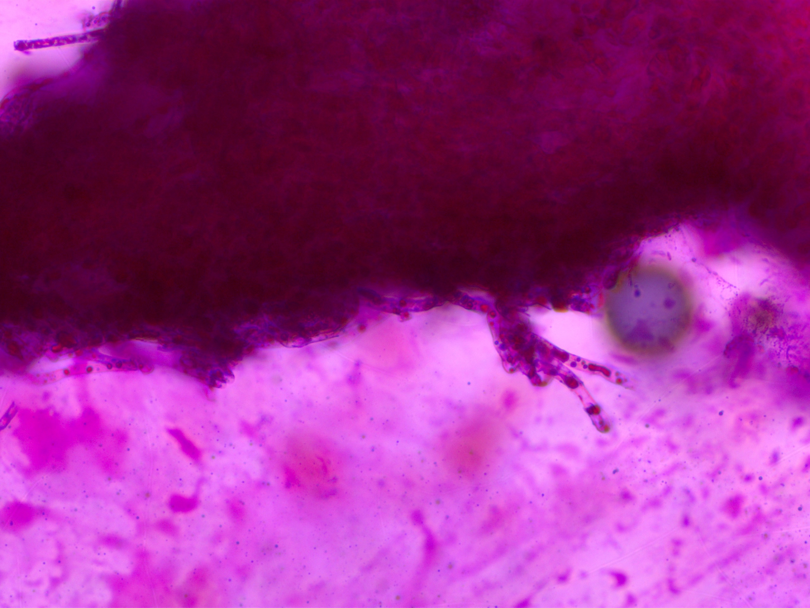 Und hier ein paar inkrustierte Primordialhyphen. Dermatozystiden waren keine vorhanden, in SV alles ohne Reaktion.