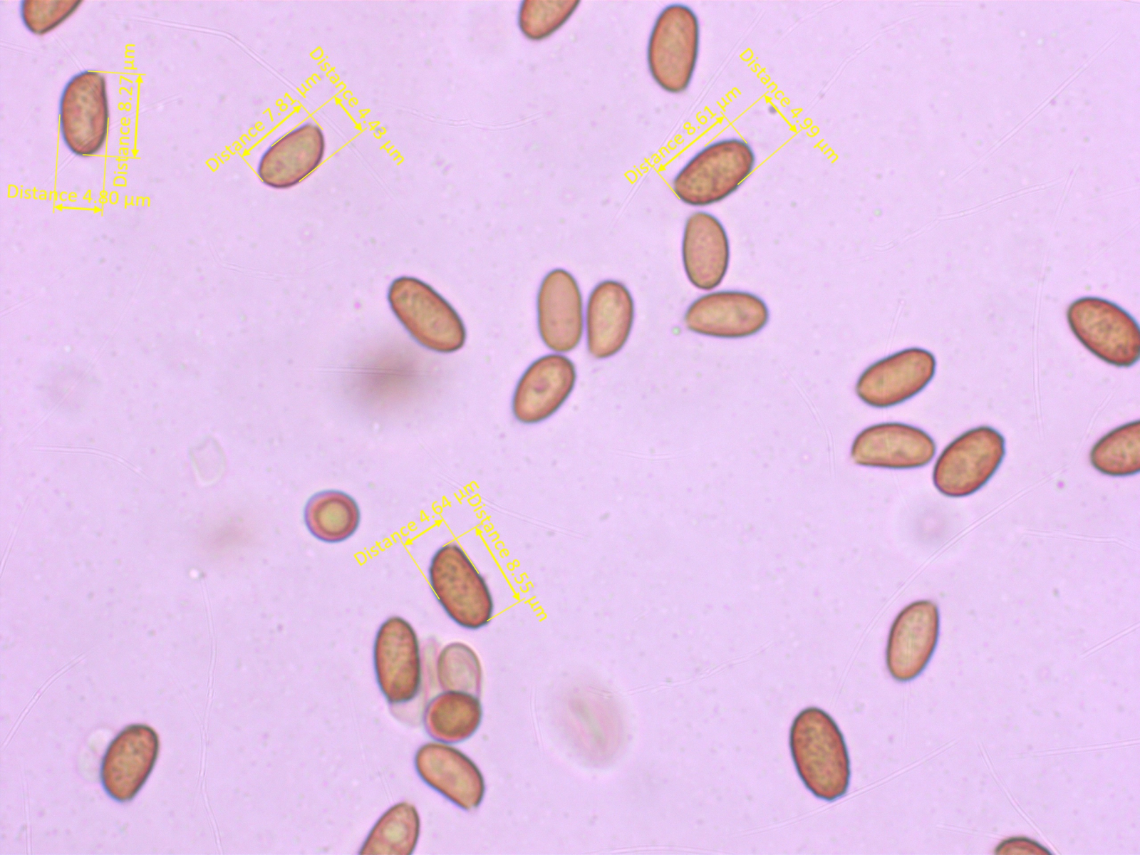 Sporenmasse: etwa 5.5-8.5 x 4.5-5.5 µm
