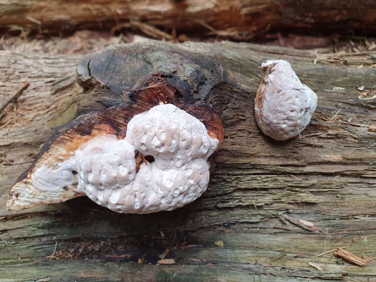 Inzwischen gehe ich auch von einer Wachstumsstörung aus. Die Fruchtkörper waren neulich, etwa zwei Monate später, noch immer dort. Völlig trocken, aber nicht vergammelt und auch nicht grösser geworden.