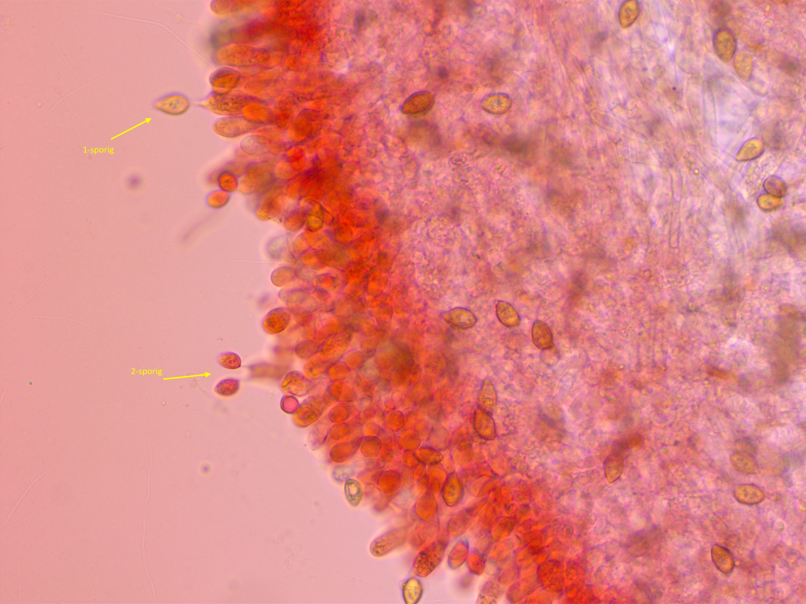 - Sporen glatt, zumindest im Profil und soweit ich das mit meinem Mikroskop erkennen kann (und wer hat schon ein REM zu Hause...)