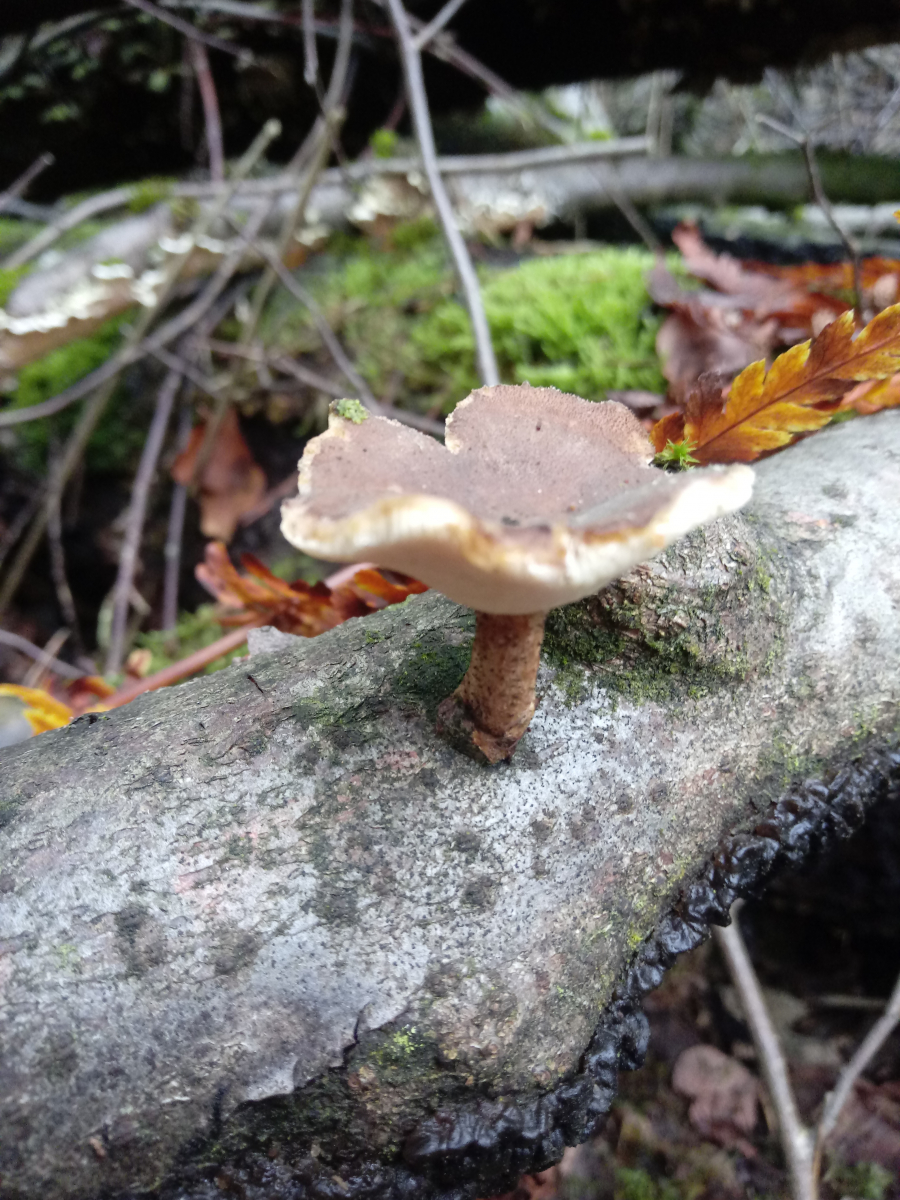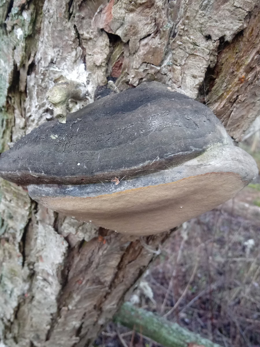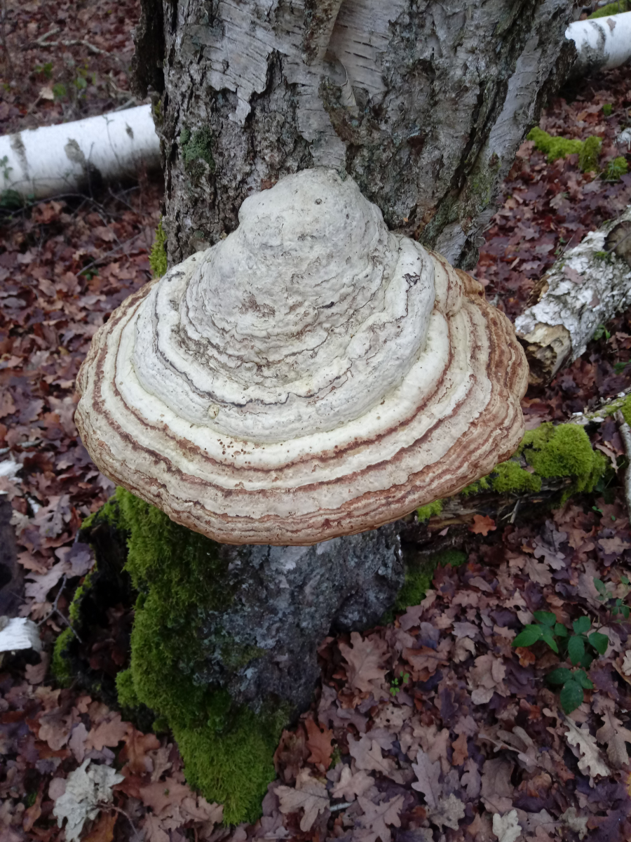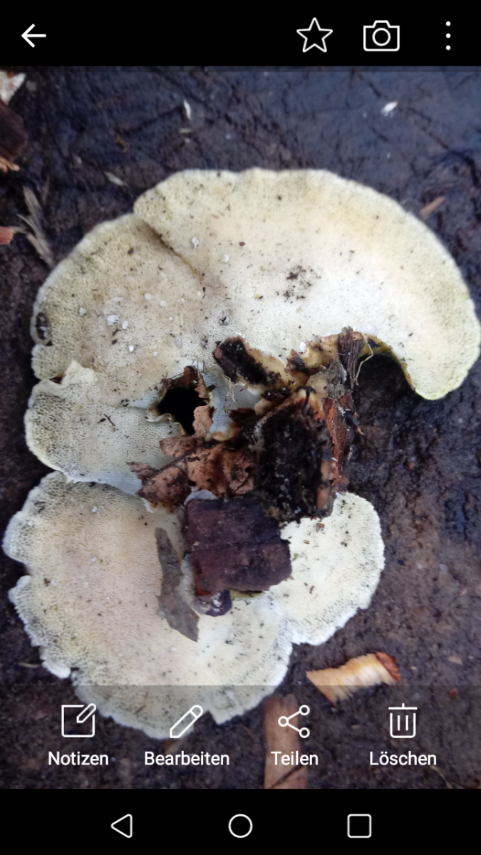 Die Oberseite scheint nach Zonen-bzw.Ockertramete auszusehen,dafür ist aber die Anwachsstelle zu schmal und die Unterseite hätte ovale Poren glaub ich.Diese hier hat genau wie die Schmetterlingstramete ausgesehen von unten....leider kein Foto....immer auf Birken kommen die so vor...![]()