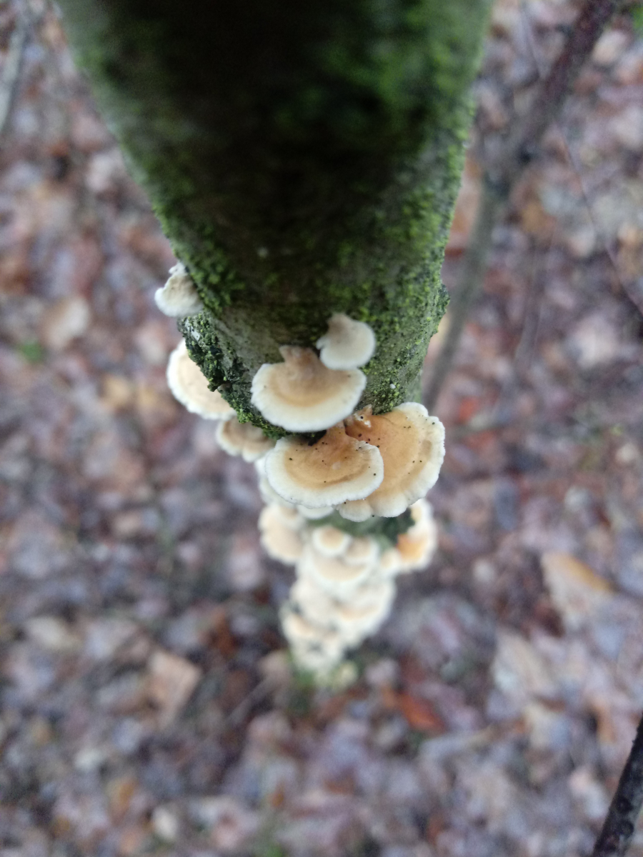 Ich bleibe bei Ockertramete,da auch die schwarze Bänderung fehlt,wie bei trametes versicolor...jemand ne Meinung?Grüße aus dem Wald![]()