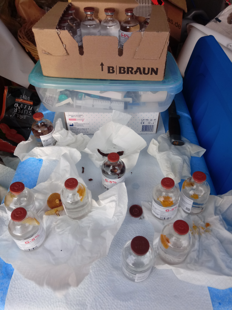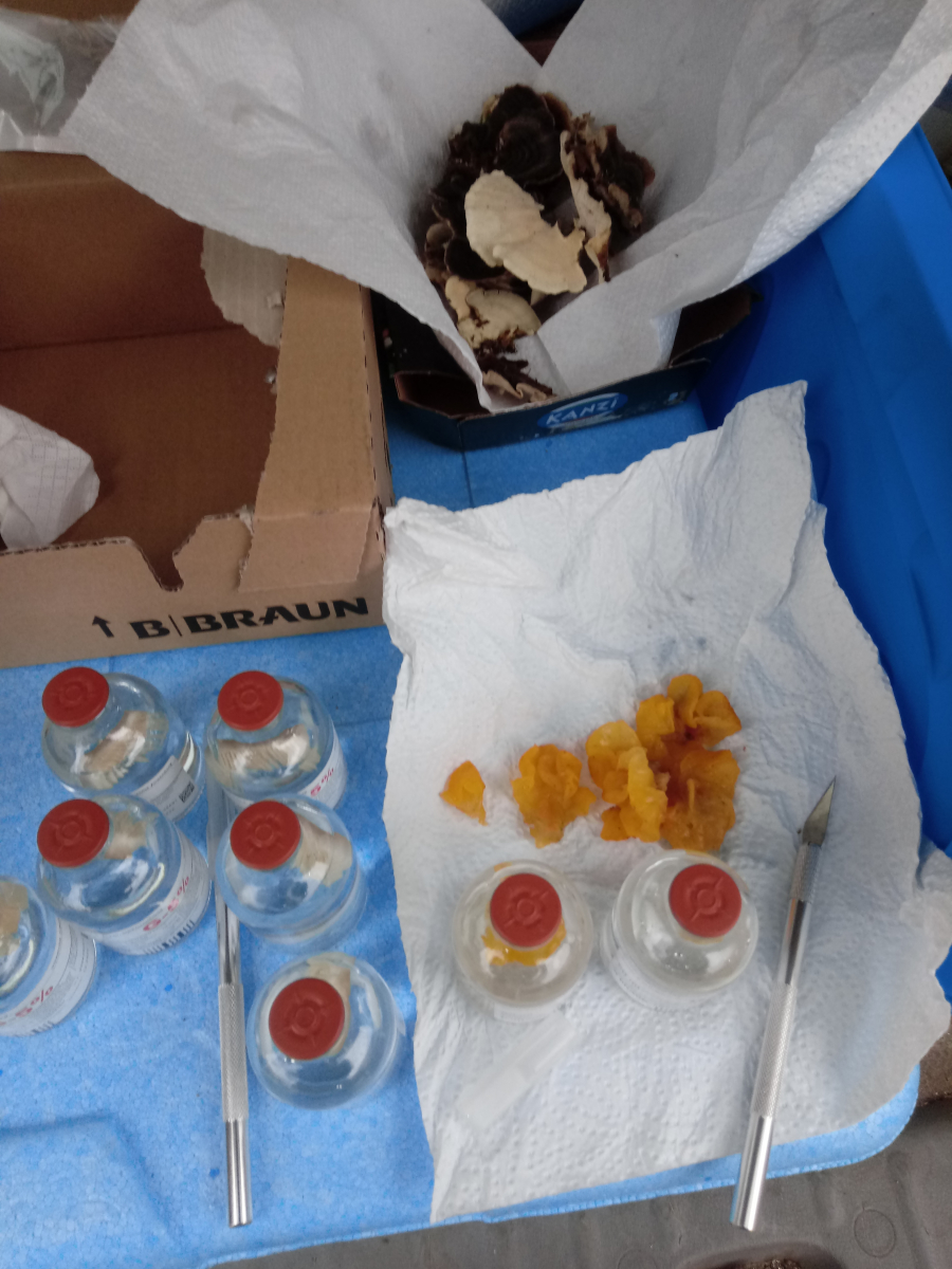 Ich möchte die ganzen Zuchtansätze auf meinem Grundstück verteilen und hoffen,dass alle so gut gedeihen wie die Schmetterlingstramete,die ich letztes Jahr "gesät" habe.