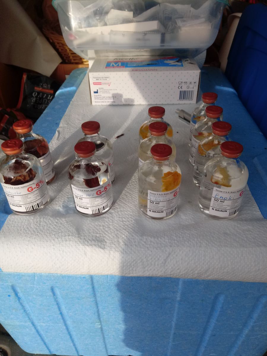 Beim Chaga sollte man sorgfältig allen Schmutz,Rinden-Holzreste entfernen und auch möglichst zerkleinern,um an alle Insekten und andere Kleinstlebewesen ranzukommen und die da rauszupopeln.