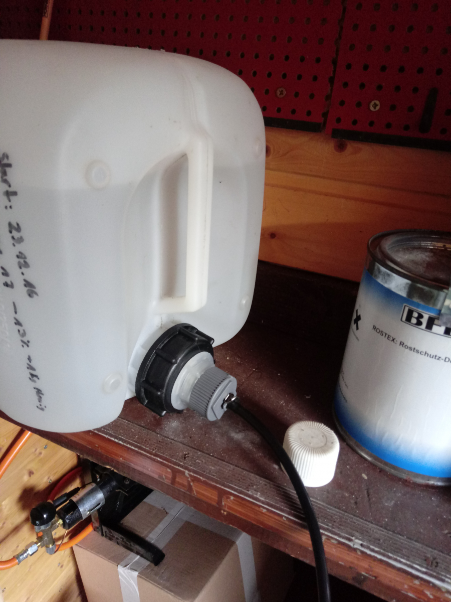 Kanister mit Wasser gefüllt find ich besser.....falls da mal ein Schlauch abgeht,dann flute ich mir die Woche über nicht den Keller
