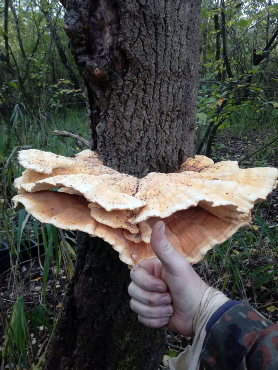 Geh ich richtig in der Annahme,dass ich mein Abendbrot gefunden habe a la Chicken of the Wood? Sieht seeeeehr danach aus.Die Textur passt auch.