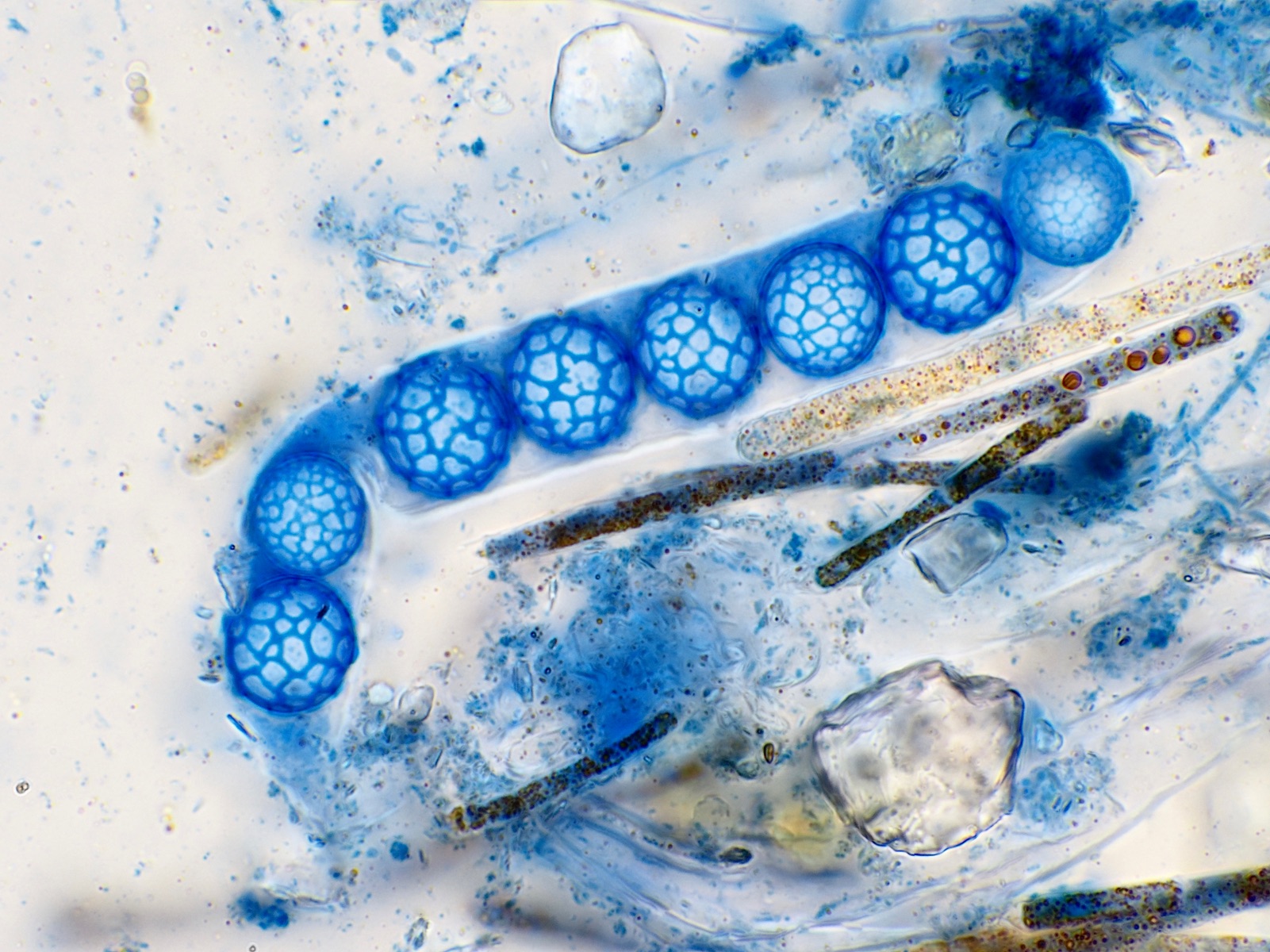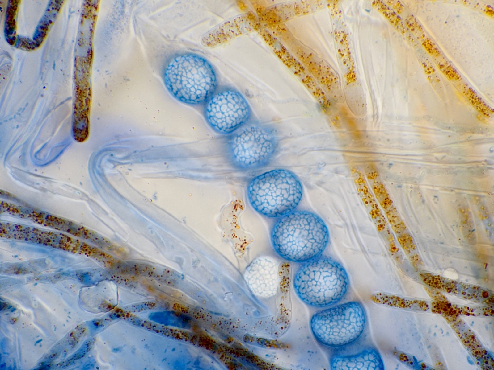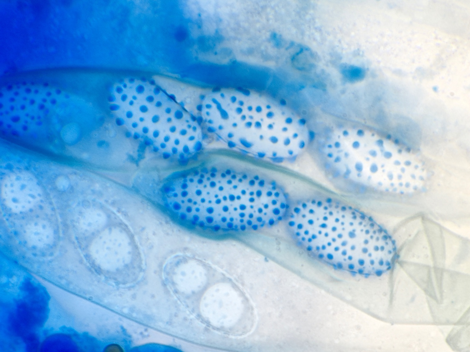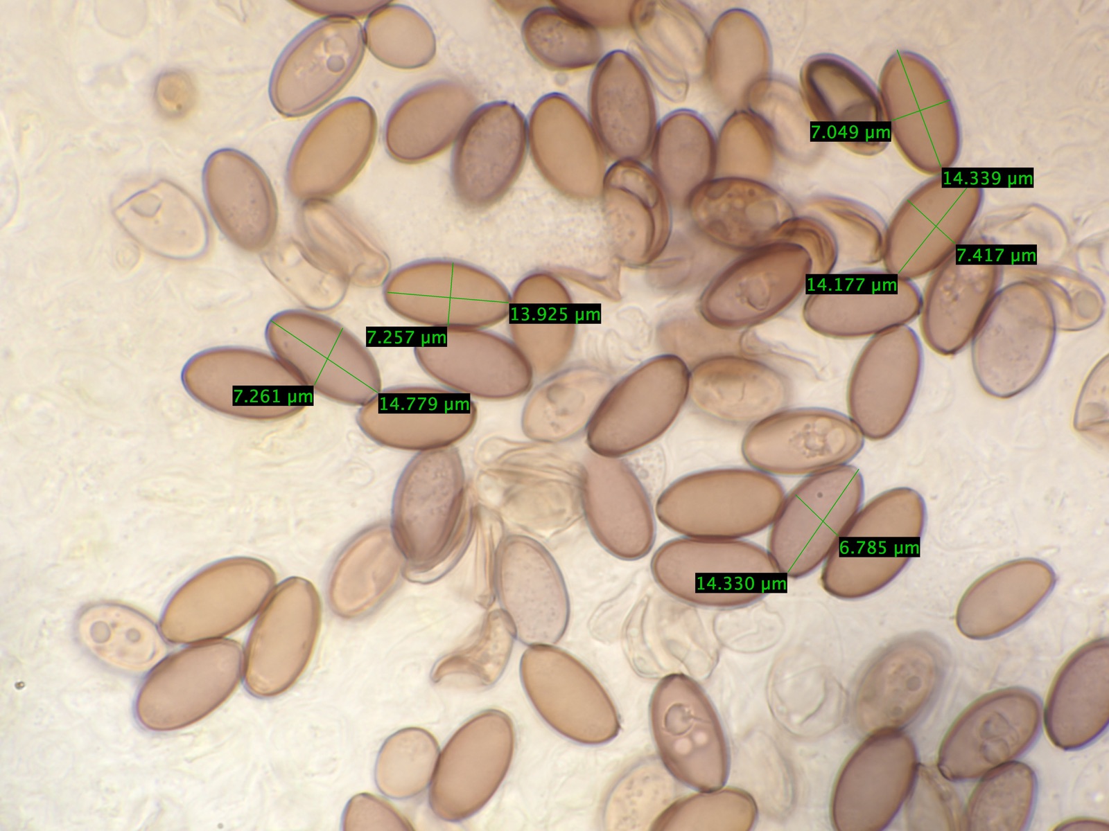 Sporen 13,9 - 15,5 Mikrometer lang und 6,9-7,4 breit.