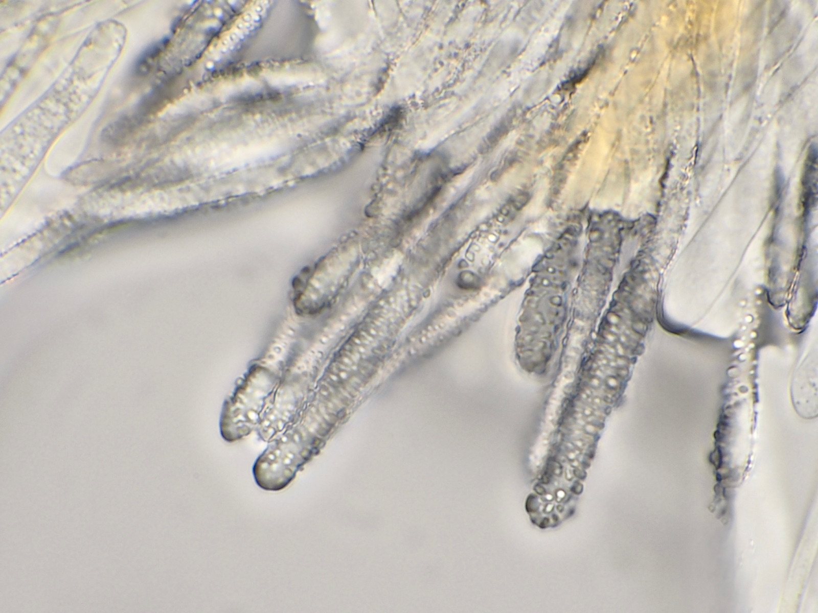 Cheilozystiden mehrheitlich gegabelt. Keine Pleurozystiden vorhanden.
