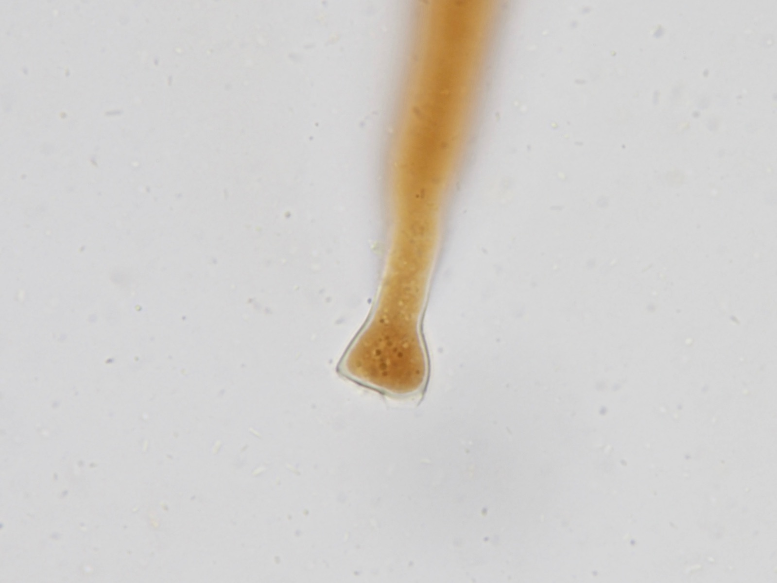 Nachdem ich 6 verschiedene Bücher durchgeschaut habe, kann es eigentlich nur Psilocybe semilanceata (spitzkegeliger Kahlkopf) sein. Der scheint mir der einzige mit derlei Zystiden zu sein und die Sporenmaße passen auch. Wieder Ludwig: