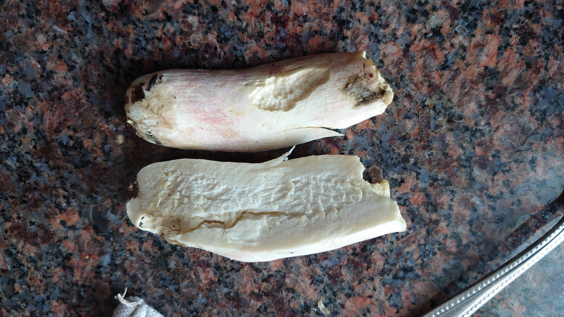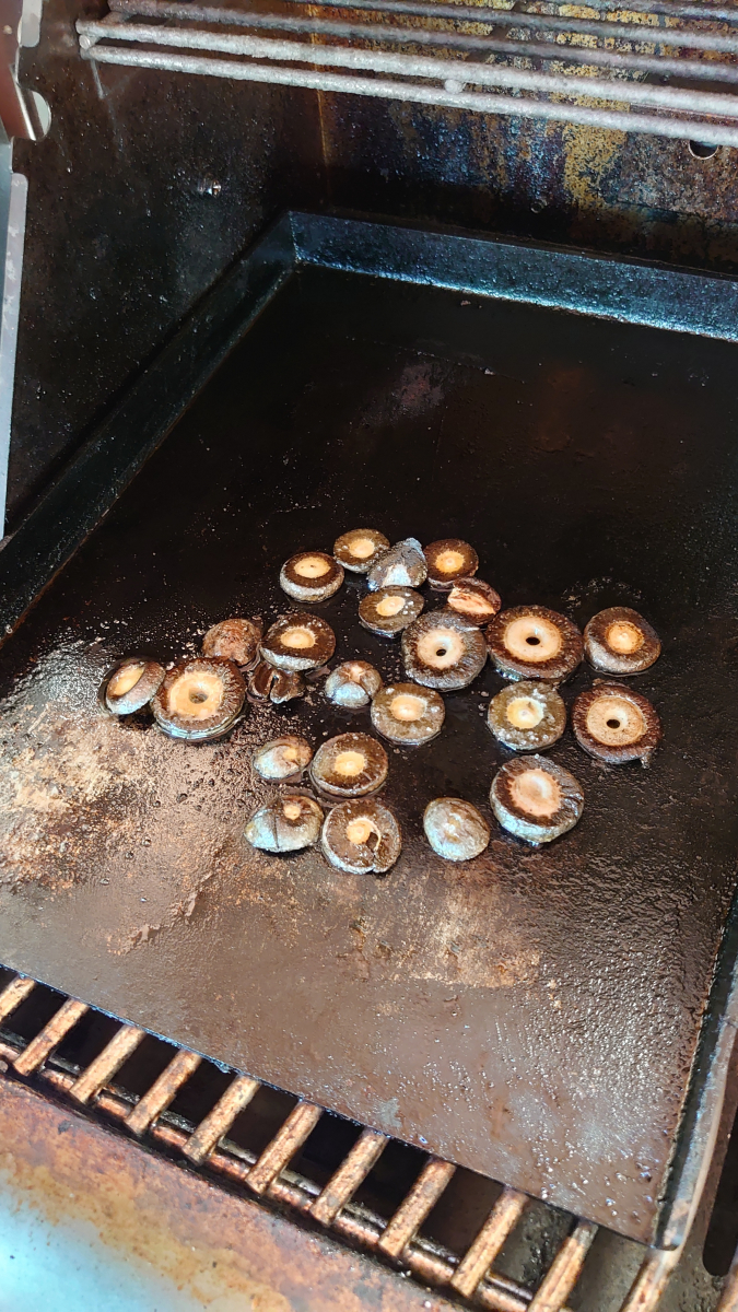 Wir haben dann 5 Stück mitgenommem und diese mit Salz und Pfeffer kross gebraten. Es ist erstaunlich, die riechen tatsächlich nach Rettich, wenn sie aufgeschnitten werden. Wir haben die Glibberschicht samt der dünnen weißen inneren Haut abgezogen, sodass nur das innere mit dem schwarzen Rand übrig blieb. Kross gebraten schmecken die erstaunlicherweise tatsächlich nach angebratenen Kartoffeln, das war echt erstaunlich und lecker, Rettich Geschmack war komplett verflogen, dafür hätte man die wahrscheinlich schon eher vom der Grillplatte nehmen müssen.