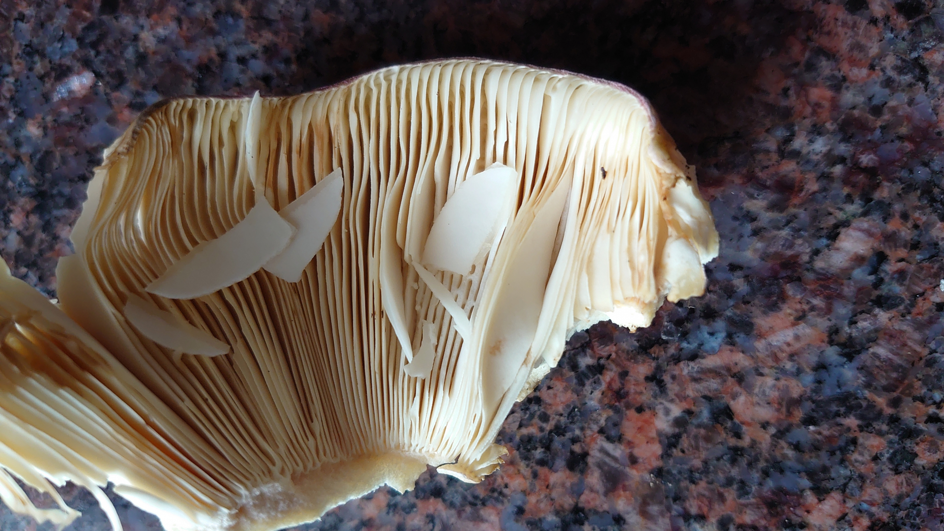 Lamellen: brüchig, aber erst beim 2.oder 3. drüberstreichen, sie scheinen auch da wo sie angewachsen sind leicht queradrig zu sein